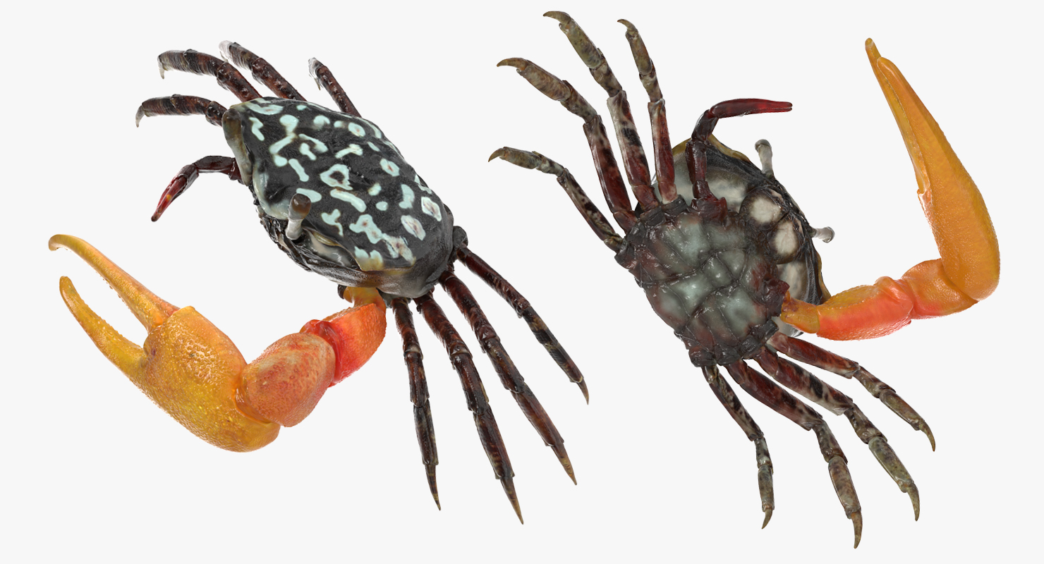 Fiddler Crab is a high quality, photo real 3d model that will enhance detail and realism to any of your rendering projects. The model has a fully textured, detailed design that allows for close-up renders, and was originally modeled in 3ds Max 2020 and rendered with V-Ray. Renders have no postprocessing!