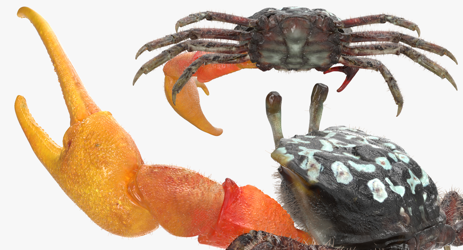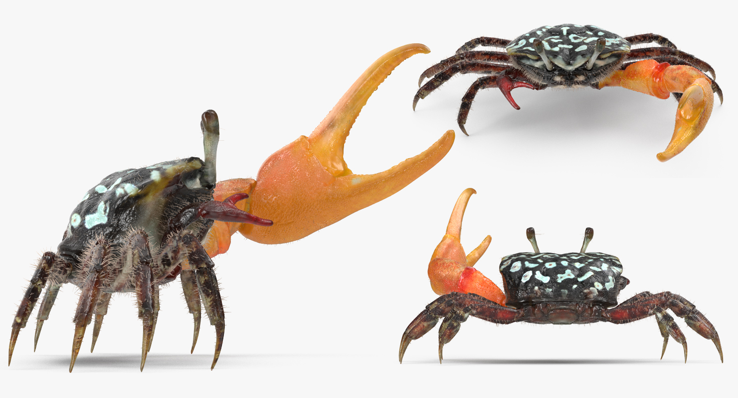 Fiddler Crab Fighting Pose with Fur is a high quality, photo real 3d model that will enhance detail and realism to any of your rendering projects. The model has a fully textured, detailed design that allows for close-up renders, and was originally modeled in 3ds Max 2020 and rendered with V-Ray. Renders have no postprocessing!