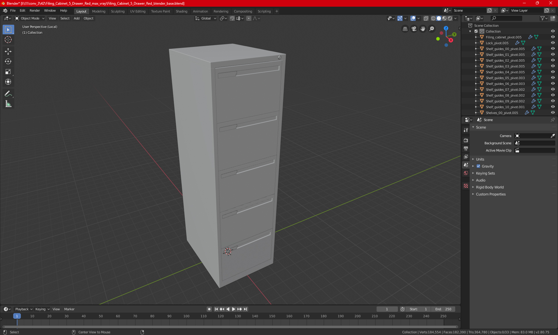 Filing Cabinet 5 Drawer Blue is a high quality, photo real 3d model that will enhance detail and realism to any of your rendering projects. The model has a fully textured, detailed design that allows for close-up renders, and was originally modeled in 3ds Max 2020 and rendered with V-Ray. Renders have no postprocessing!