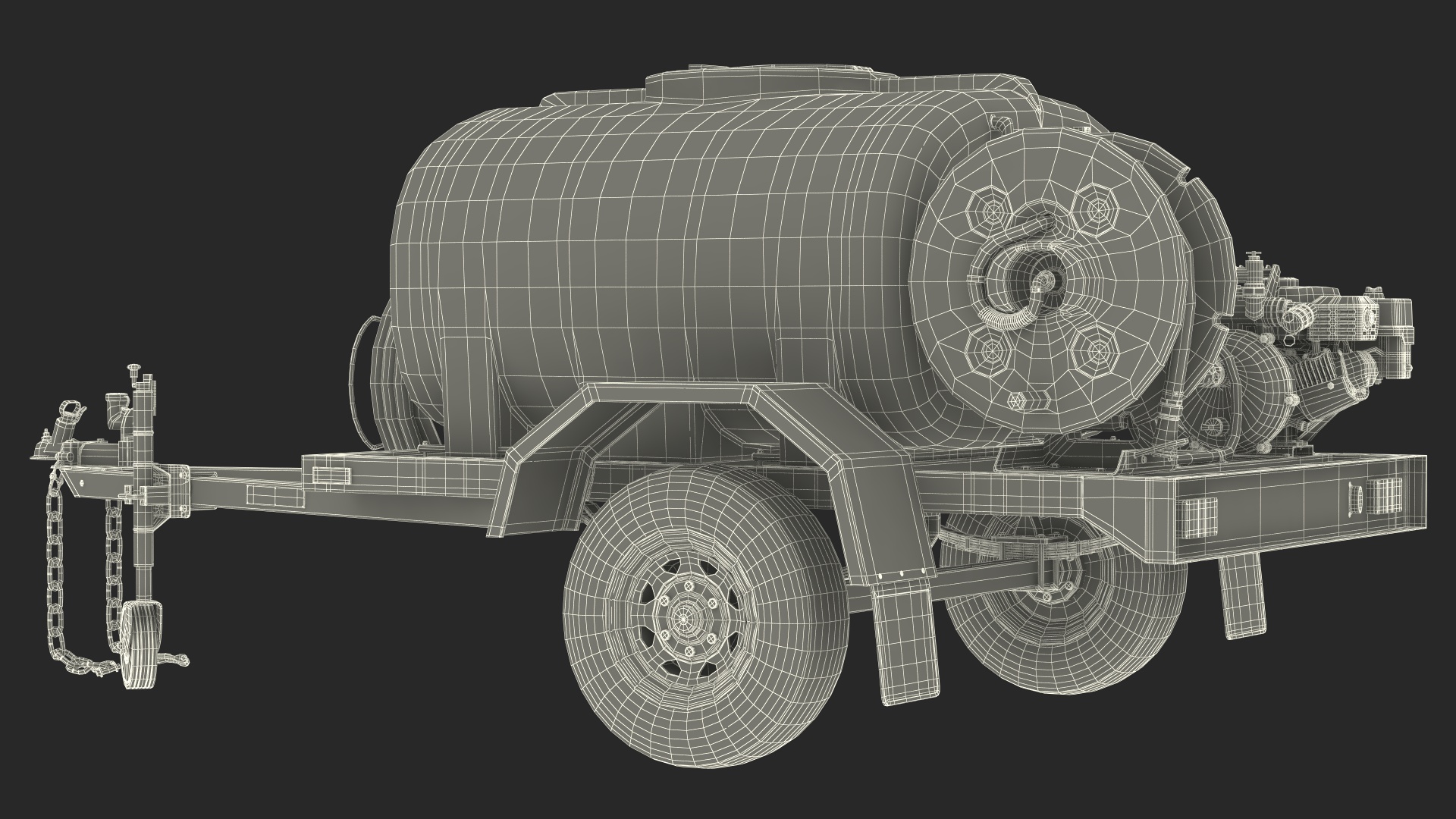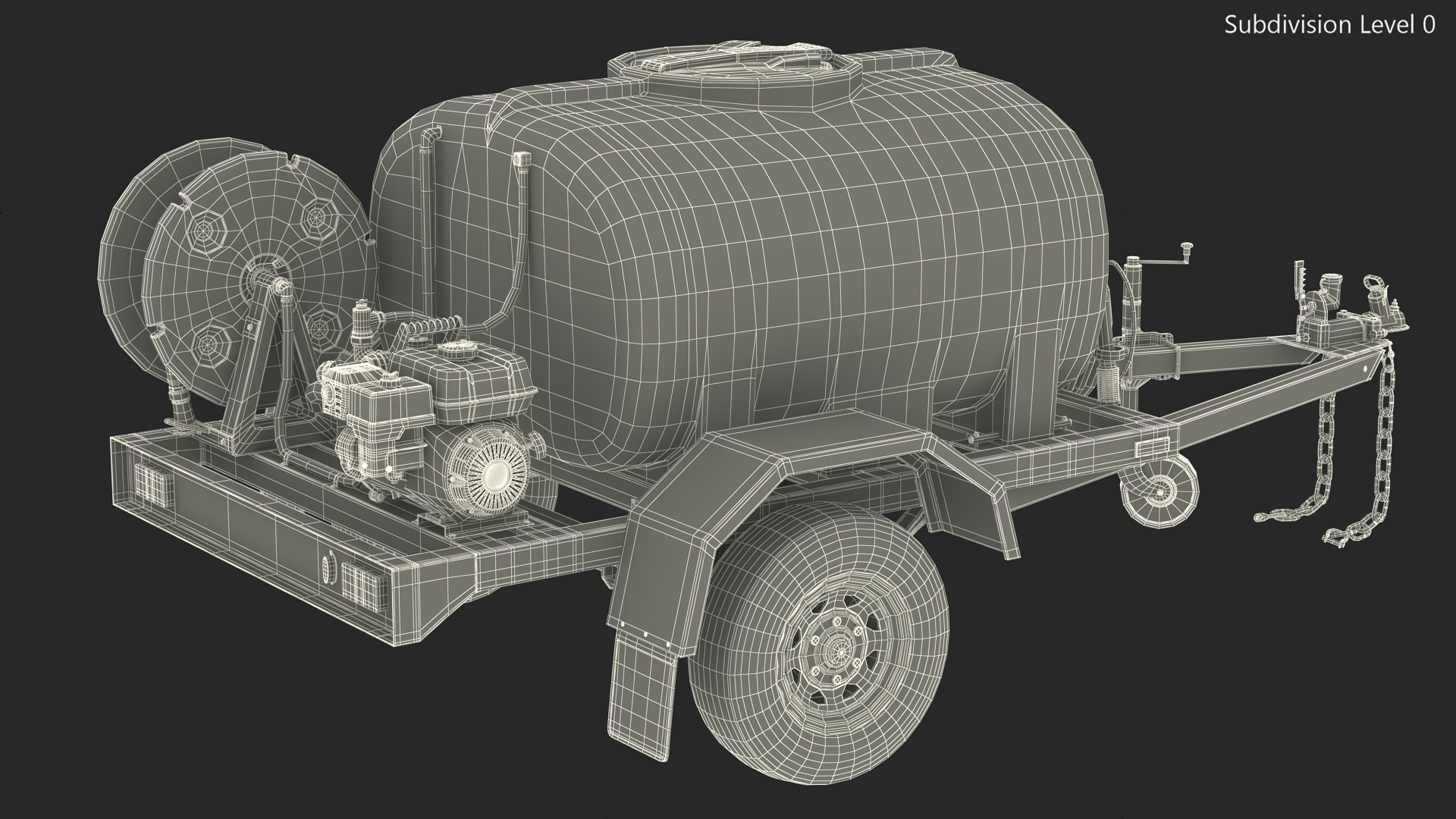 Fire Fighting Trailer Rigged is a three-dimensional model of portable and mobile fire-fighting wheeled trailer with water tank, pump and hose, which used to combat wildfires, industrial fires and more.
