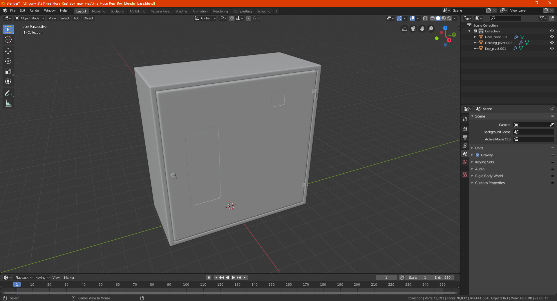 Fire Hose Reel Box is a high quality, photo real 3d model that will enhance detail and realism to any of your rendering projects. The model has a fully textured, detailed design that allows for close-up renders, and was originally modeled in 3ds Max 2020 and rendered with V-Ray. Renders have no postprocessing!