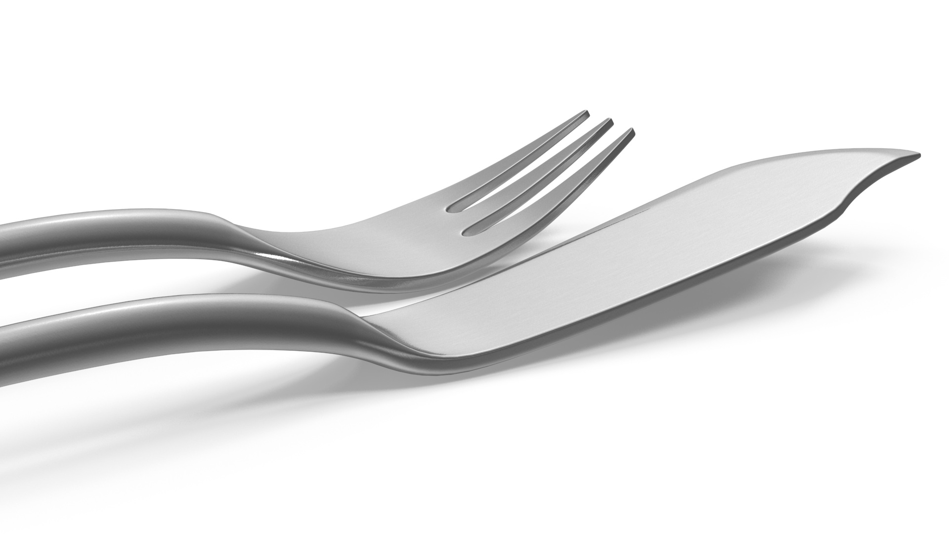 Fish Cutlery Set Silver is a 3d model of specialized set of utensils designed for eating fish, consisting of specific knife and fork.