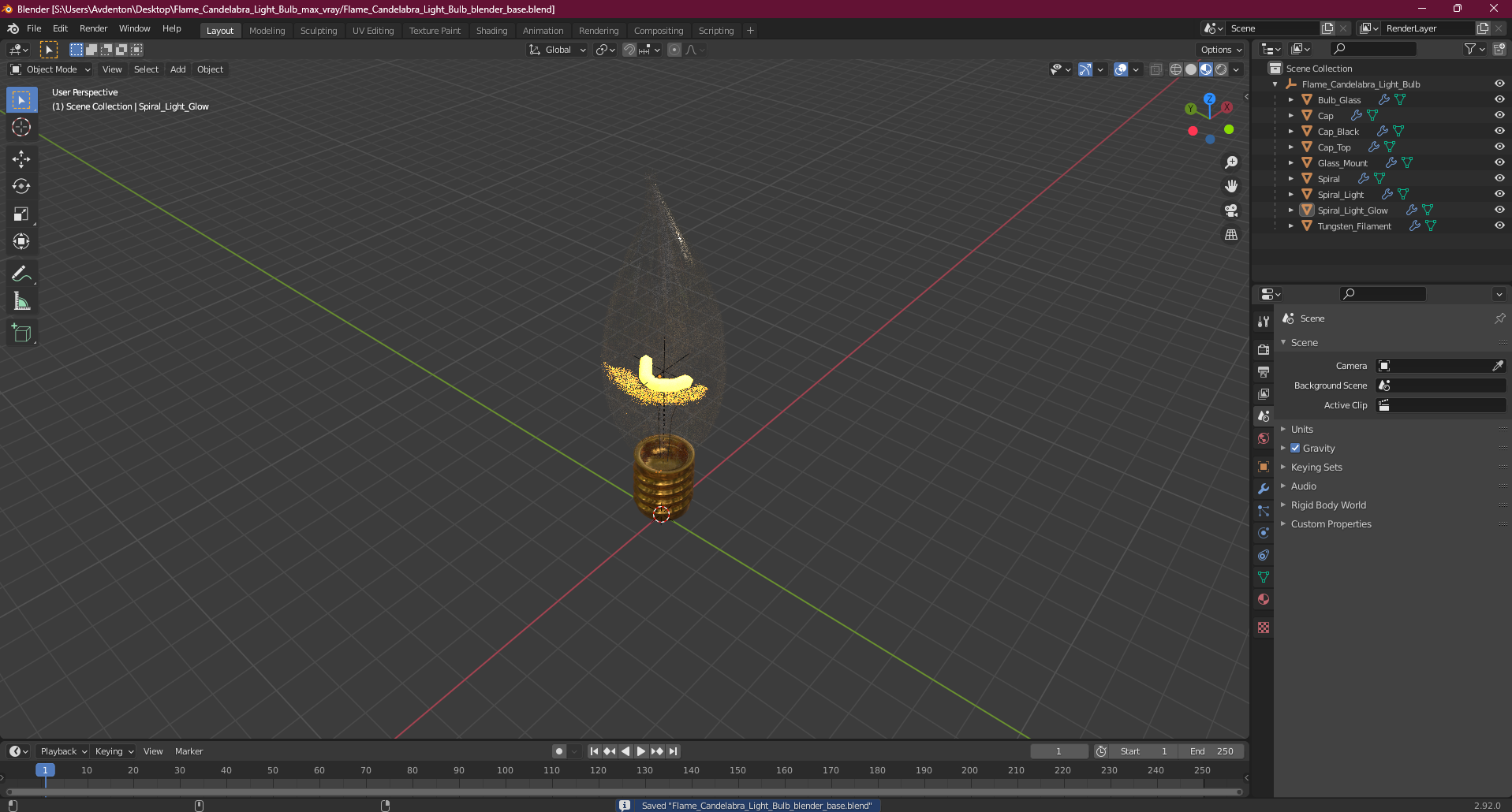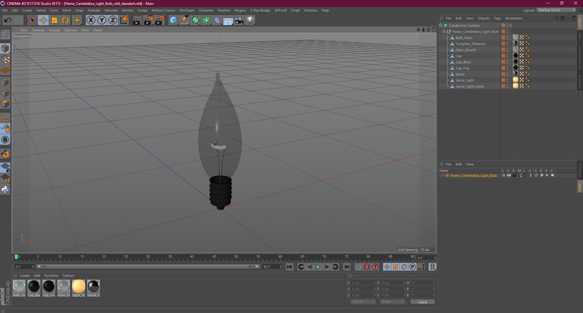 Flame Candelabra Light Bulb is a high quality, photo real 3d model that will enhance detail and realism to any of your rendering projects. The model has a fully textured, detailed design that allows for close-up renders, and was originally modeled in 3ds Max 2020 and rendered with V-Ray. Renders have no postprocessing!