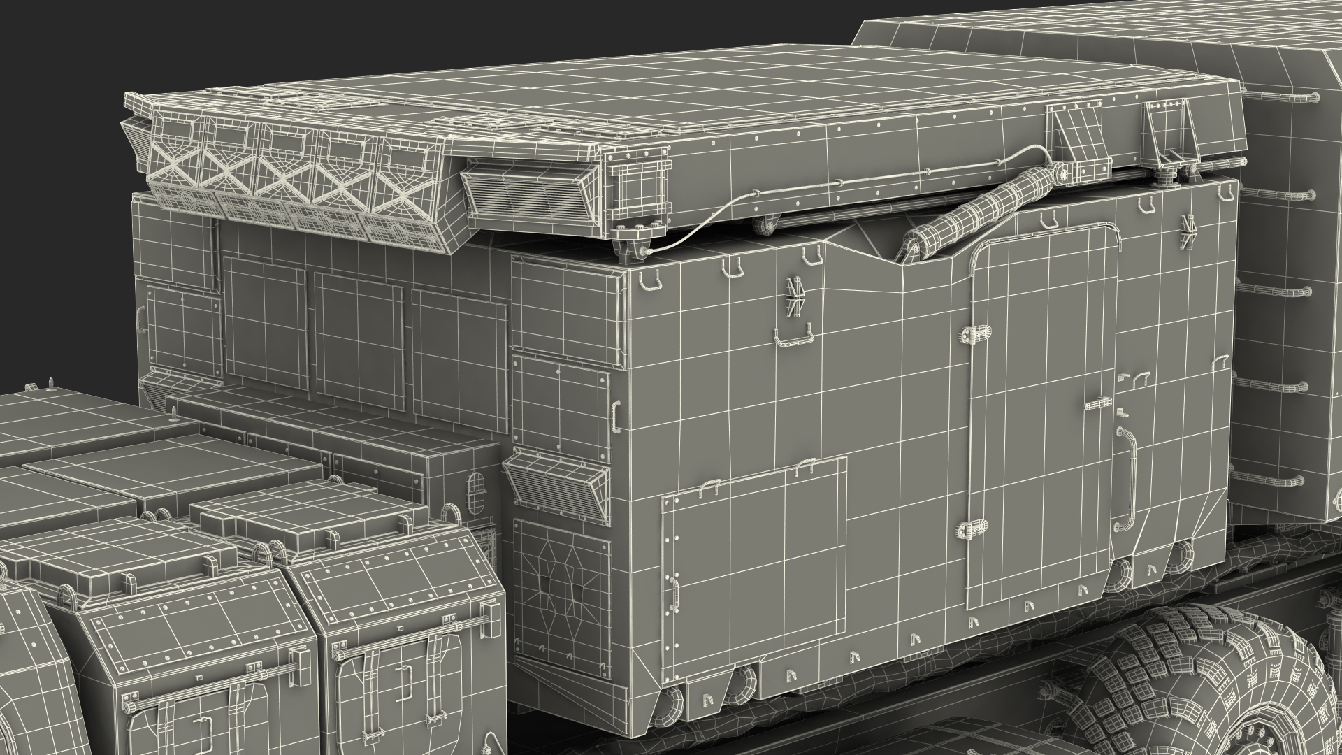 A modern military surveillance wheeled mobile radar device unit a part of long range surface-to-air missile system.