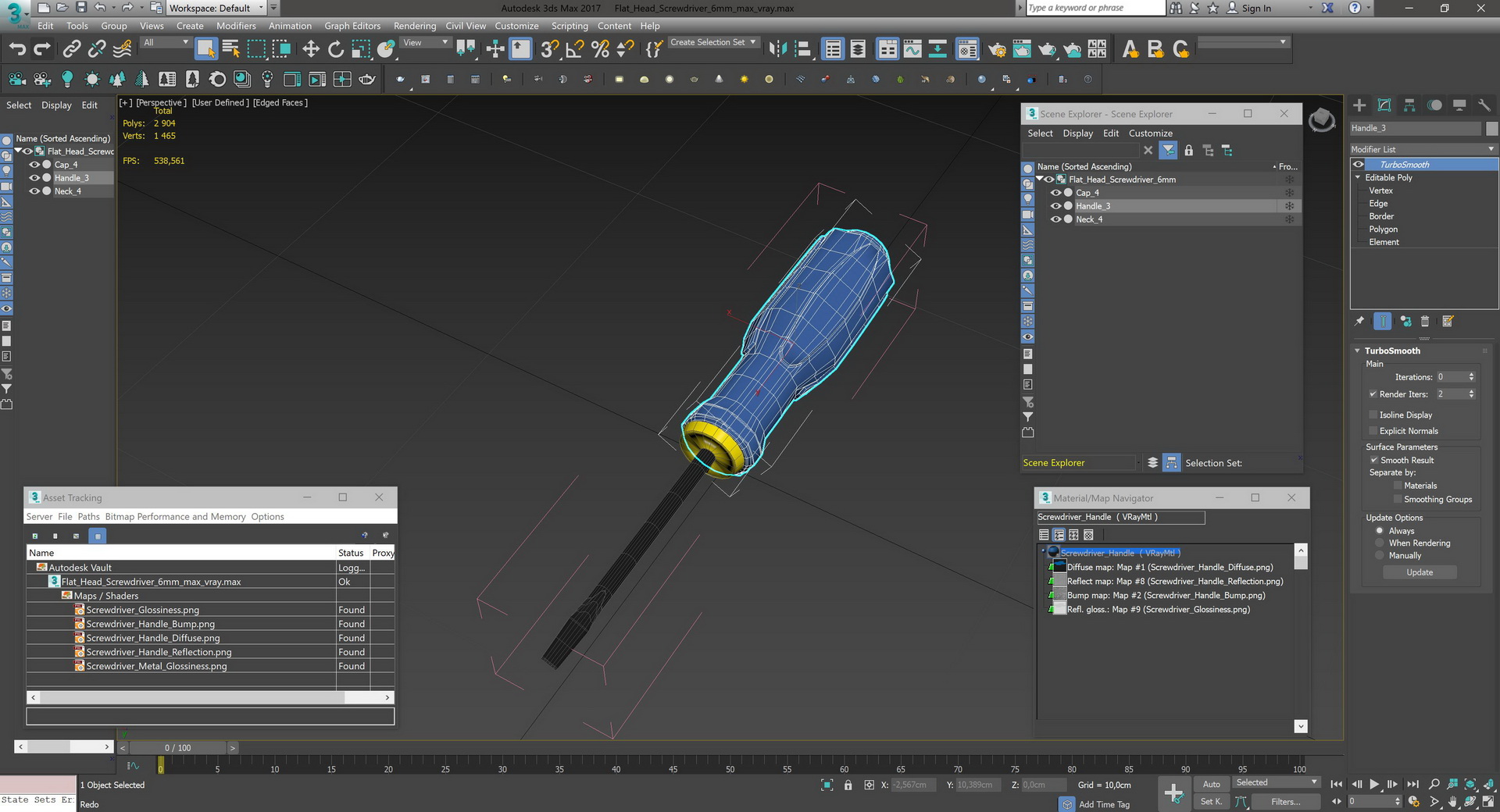 Flat Head Screwdriver 6mm is a high quality, photo real 3d model that will enhance detail and realism to any of your rendering projects. The model has a fully textured, detailed design that allows for close-up renders, and was originally modeled in 3ds Max 2020 and rendered with V-Ray. Renders have no postprocessing!