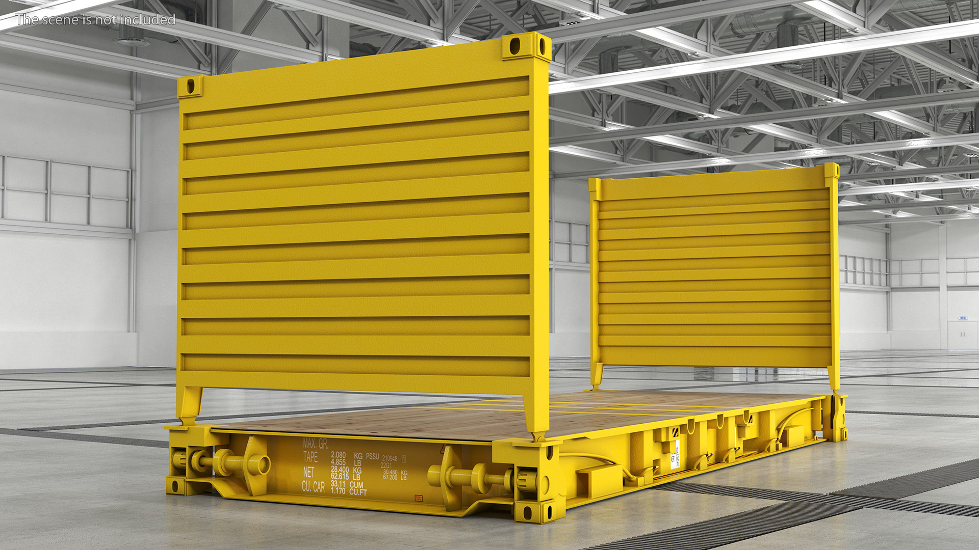 Flat Rack Container with Collapsible Ends is a three-dimensional model of flat rack container which is a specialized type primarily used for oversized or irregularly shaped cargo.