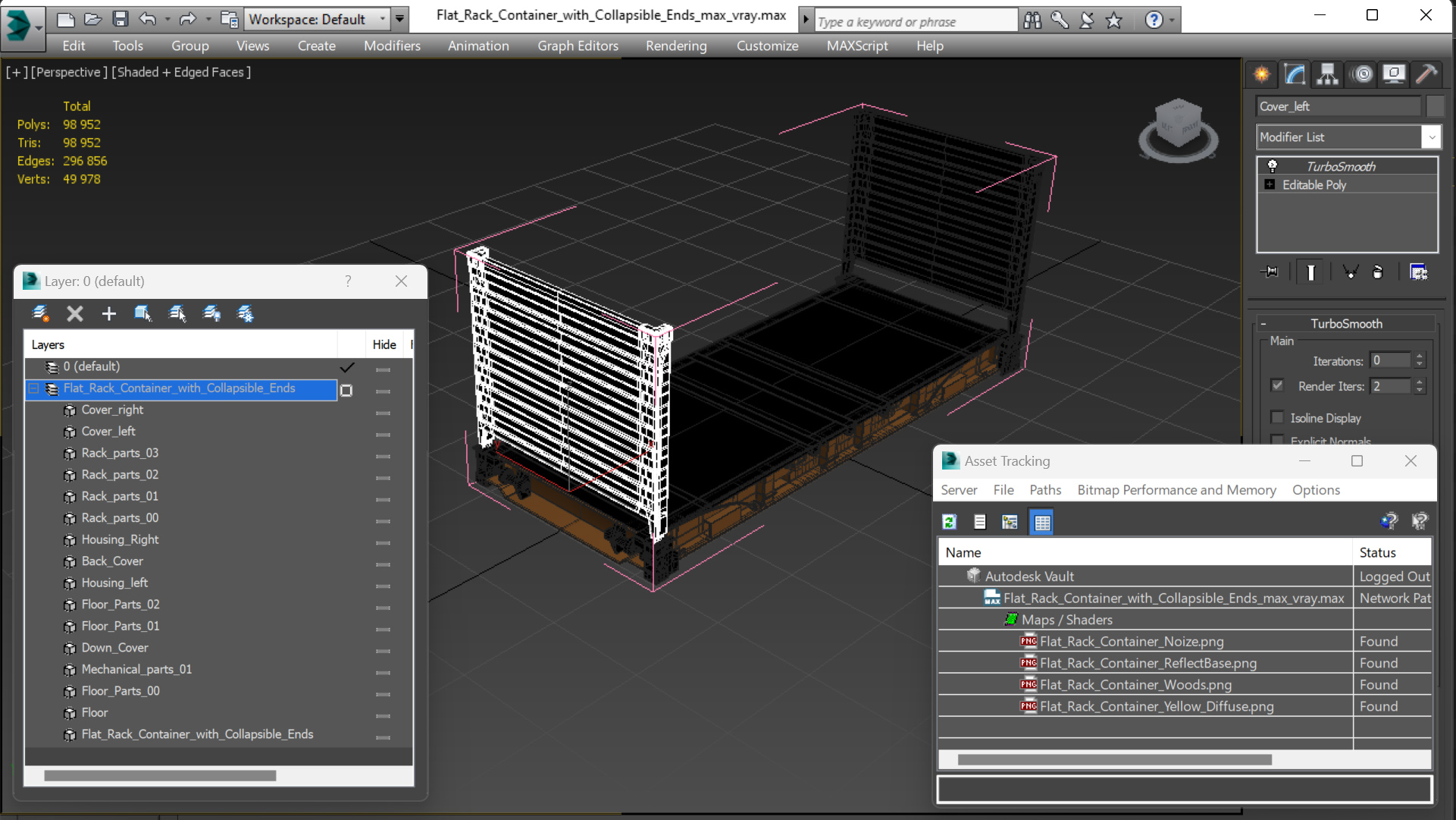 Flat Rack Container with Collapsible Ends is a high quality, photo real 3d model that will enhance detail and realism to any of your rendering projects. The model has a fully textured, detailed design that allows for close-up renders, and was originally modeled in 3ds Max 2020 and rendered with V-Ray. Renders have no postprocessing!