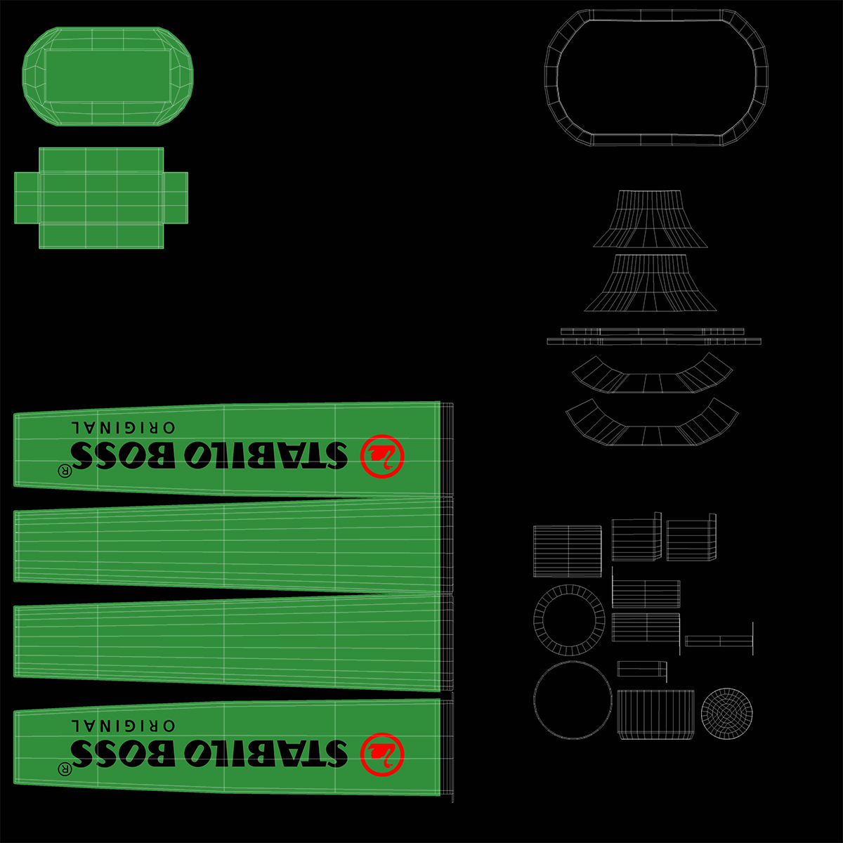 All textures and materials are included and mapped. (All colors can be easily modified.)