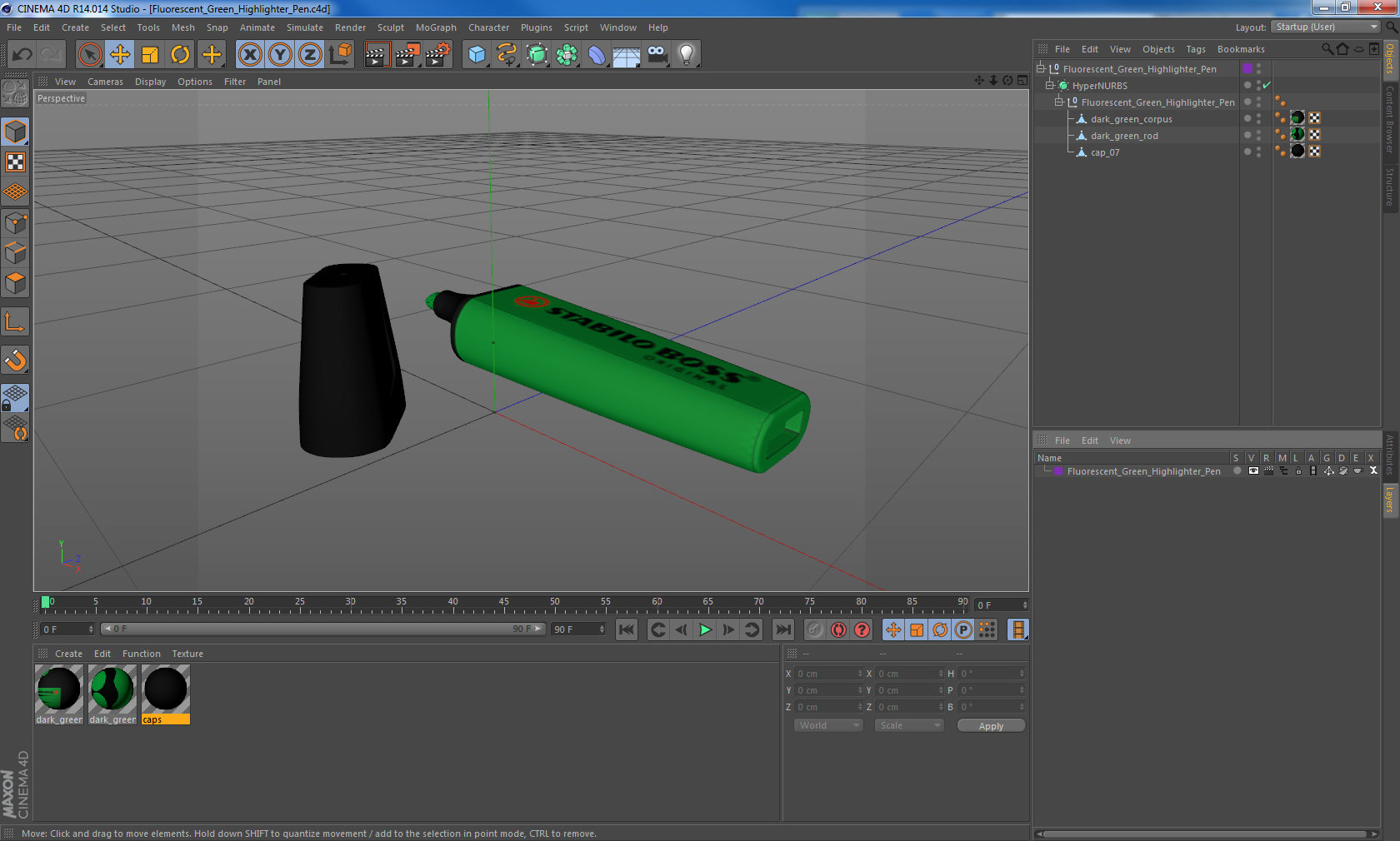 Fluorescent Green Highlighter Pen is a high quality, photo real 3d model that will enhance detail and realism to any of your rendering projects. The model has a fully textured, detailed design that allows for close-up renders, and was originally modeled in 3ds Max 2020 and rendered with V-Ray. Renders have no postprocessing!