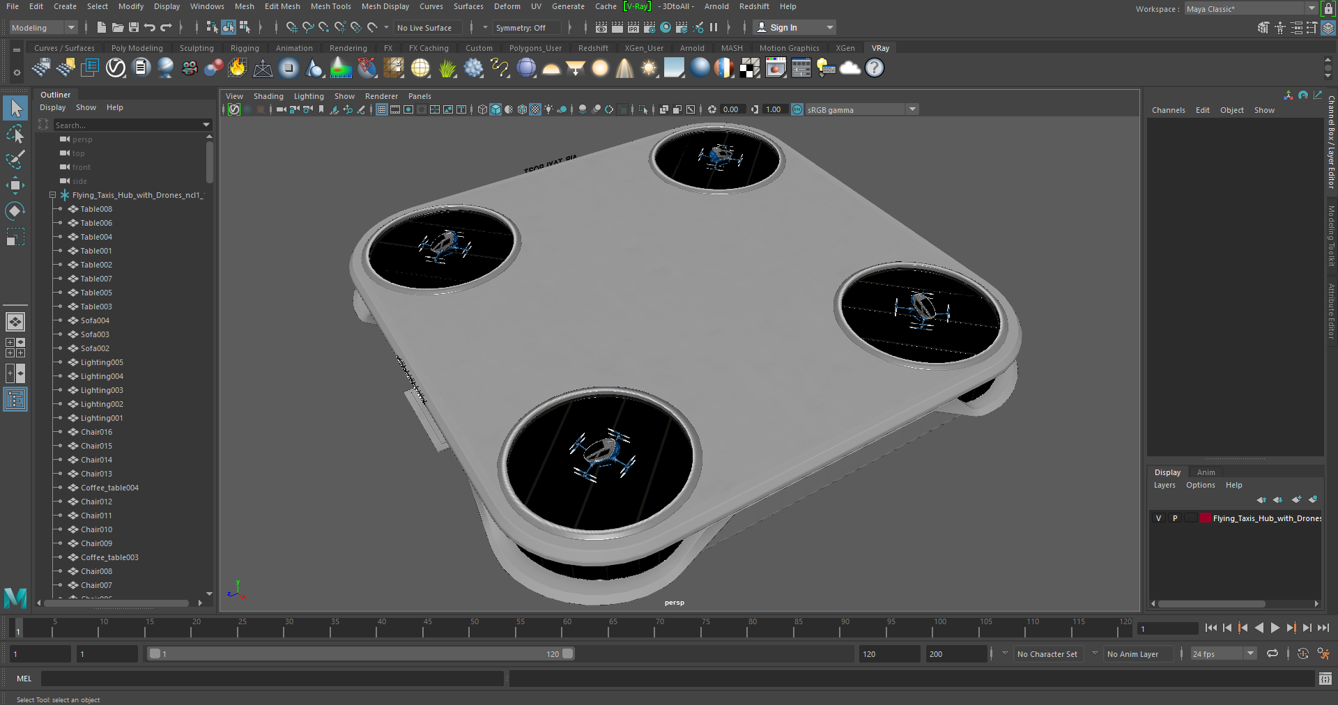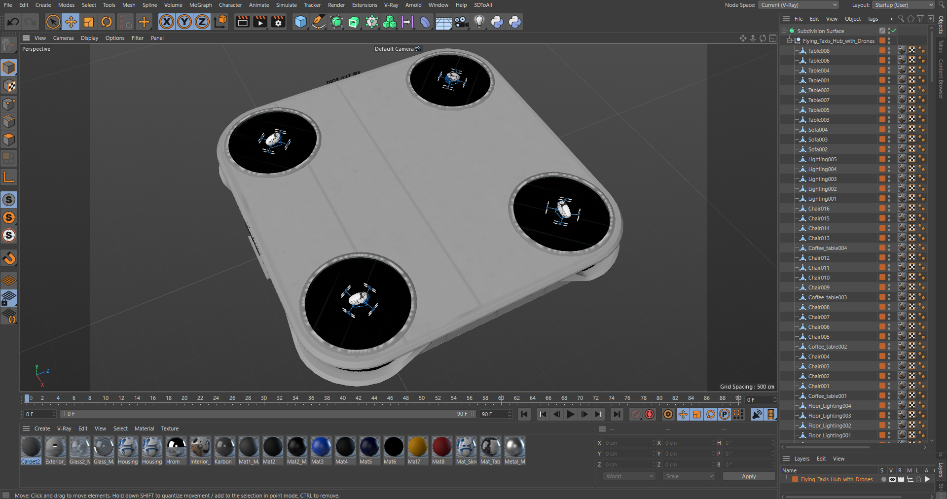 Flying Taxis Hub with Drones is a high quality, photo real 3d model that will enhance detail and realism to any of your rendering projects. The model has a fully textured, detailed design that allows for close-up renders, and was originally modeled in 3ds Max 2020 and rendered with V-Ray. Renders have no postprocessing!