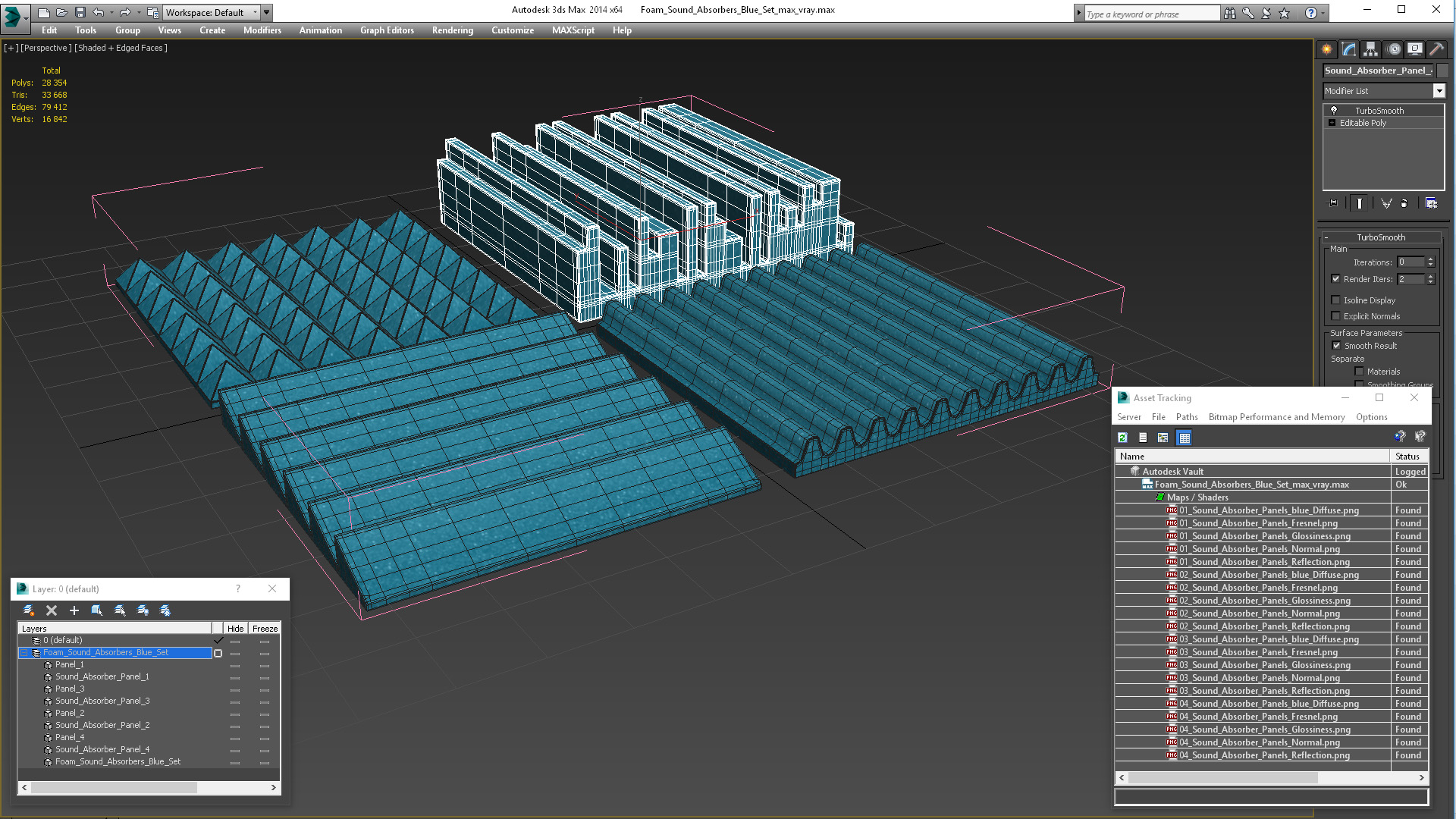 Foam Sound Absorbers Blue Set is a high quality, photo real 3d model that will enhance detail and realism to any of your rendering projects. The model has a fully textured, detailed design that allows for close-up renders, and was originally modeled in 3ds Max 2020 and rendered with V-Ray. Renders have no postprocessing!