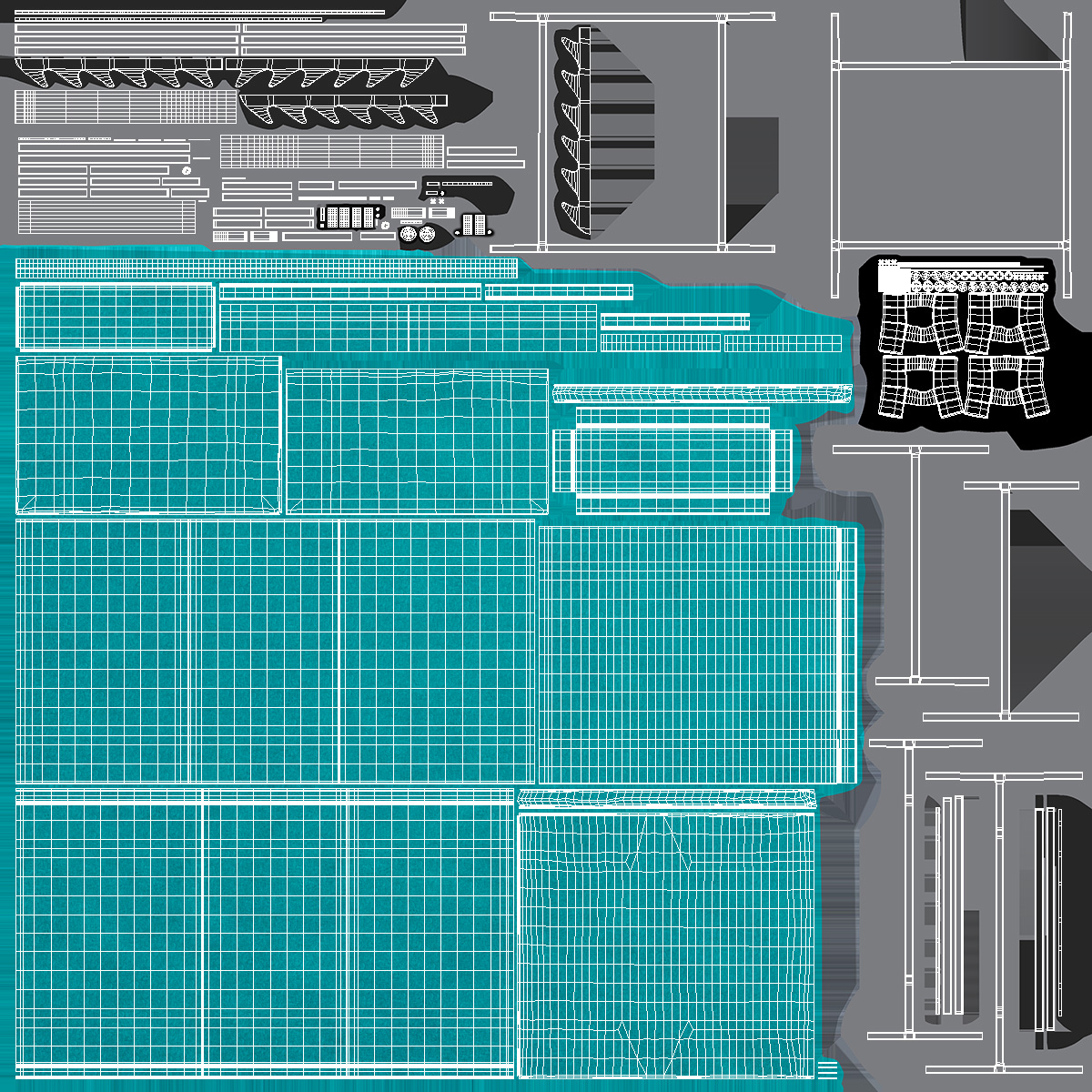 All textures and materials are included and mapped. (All colors can be easily modified.)
