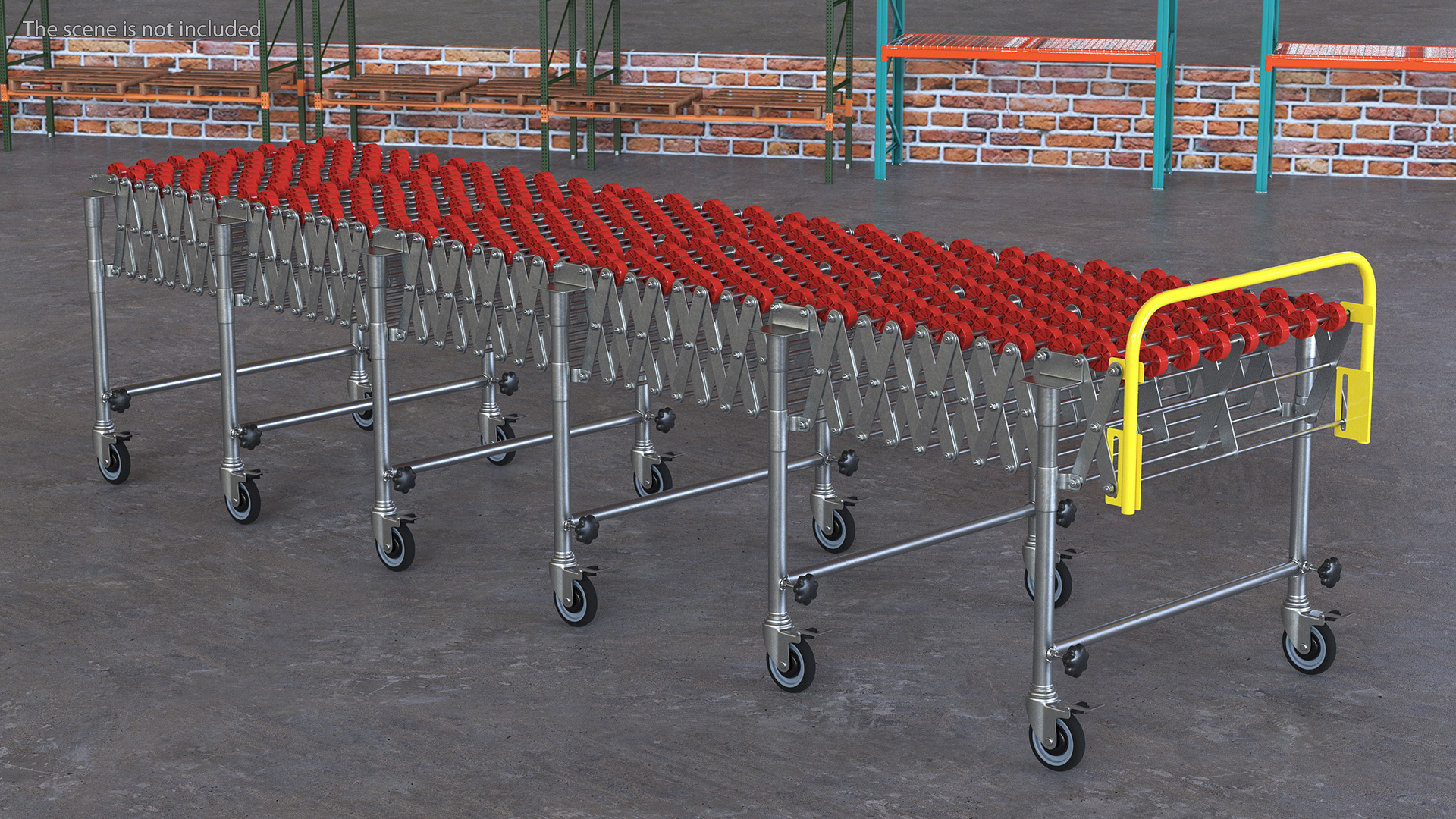 Folding Telescopic Roller Red is a 3d model of conveyor system commonly used in logistics and shipping applications to load and unload cargo from trucks and shipping containers.