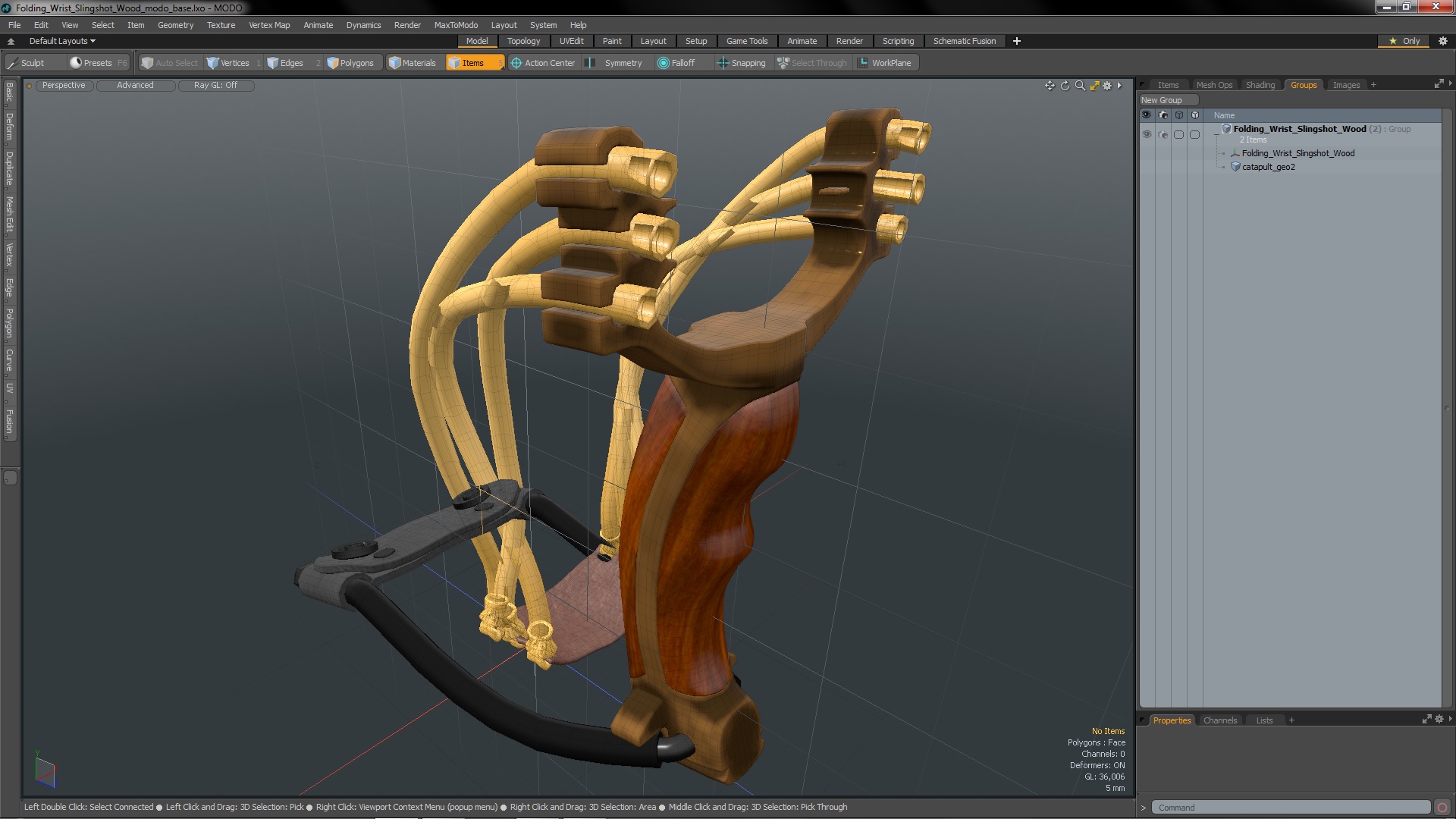 Folding Wrist Slingshot Wood is a 3D model of handheld device which used to propel small projectiles, such as stones, marbles, or steel balls, at high speeds.