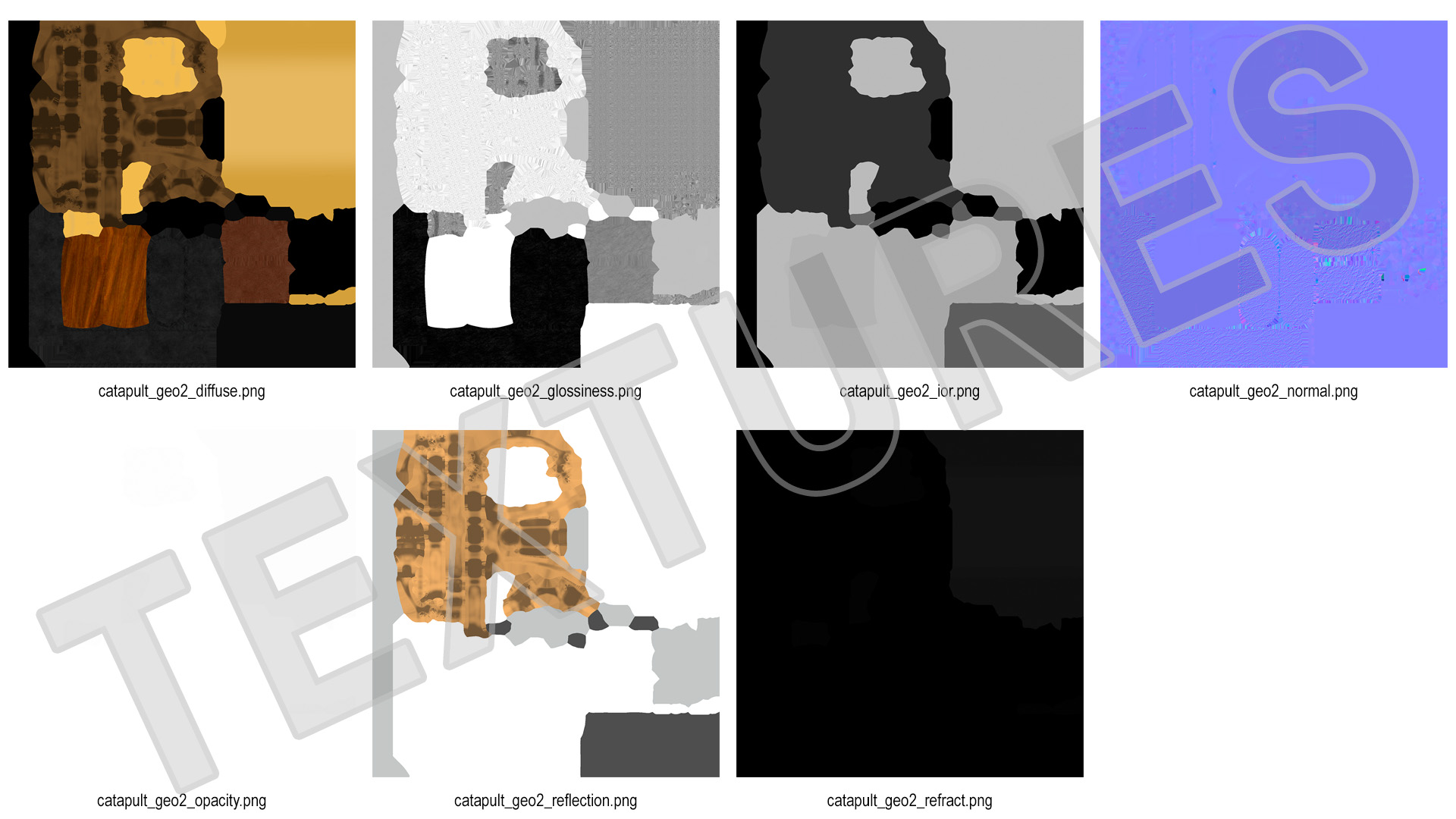 All textures and materials are included and mapped. (All colors can be easily modified.)