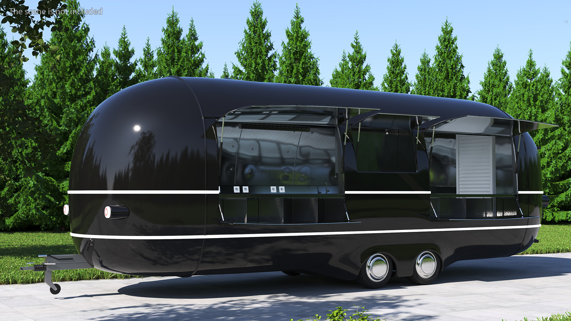 Food Truck Black is a 3D model of vending food trailer (food retail caravan ) which is a popular, well known mobile food service business item that offers fast food options from a wheeled trailer (vending truck or vending camper).