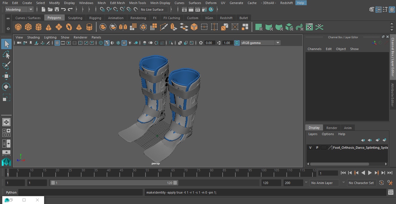 Foot Orthosis Darco Splinting System is a high quality, photo real 3d model that will enhance detail and realism to any of your rendering projects. The model has a fully textured, detailed design that allows for close-up renders, and was originally modeled in 3ds Max 2020 and rendered with V-Ray. Renders have no postprocessing!