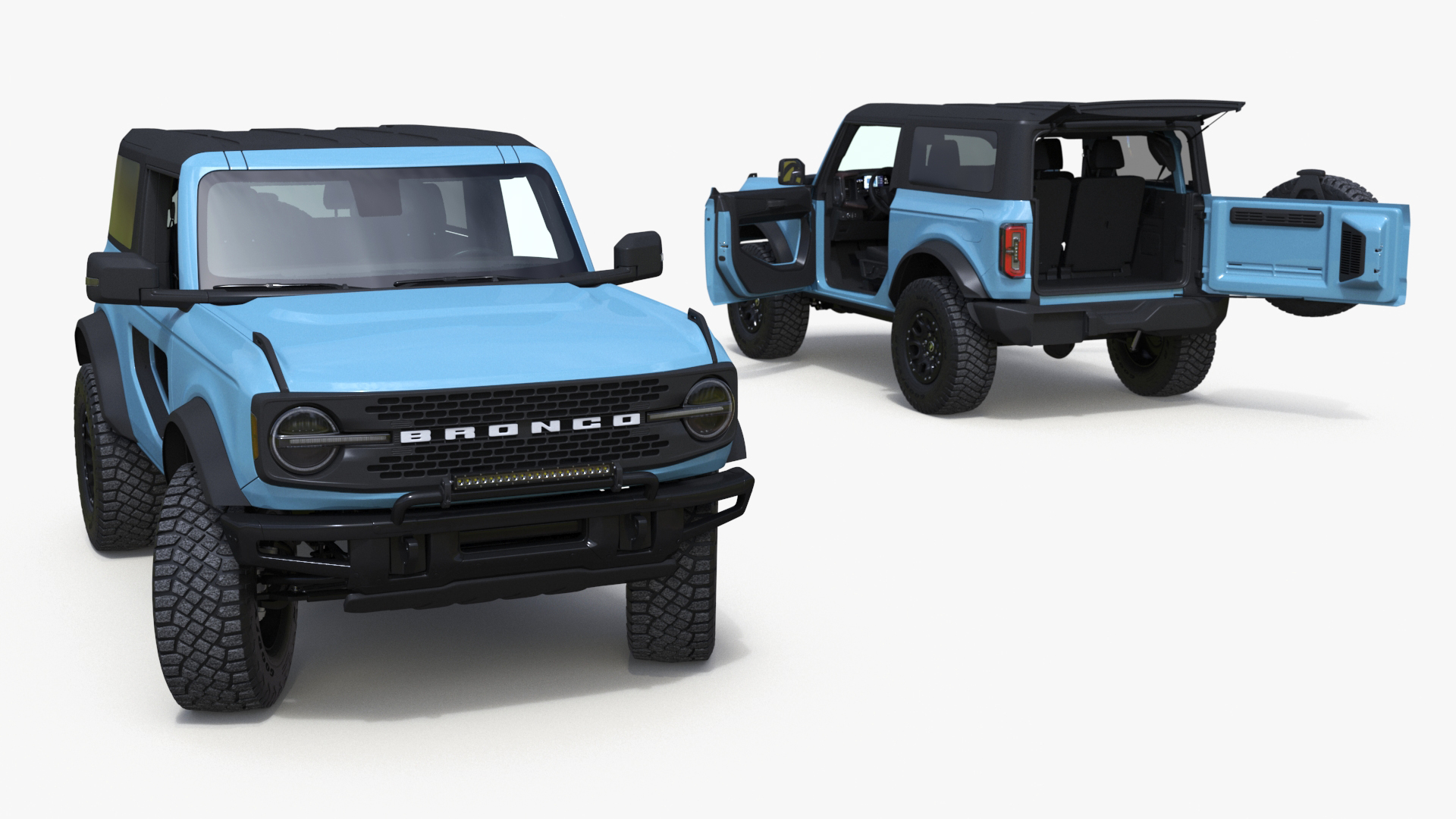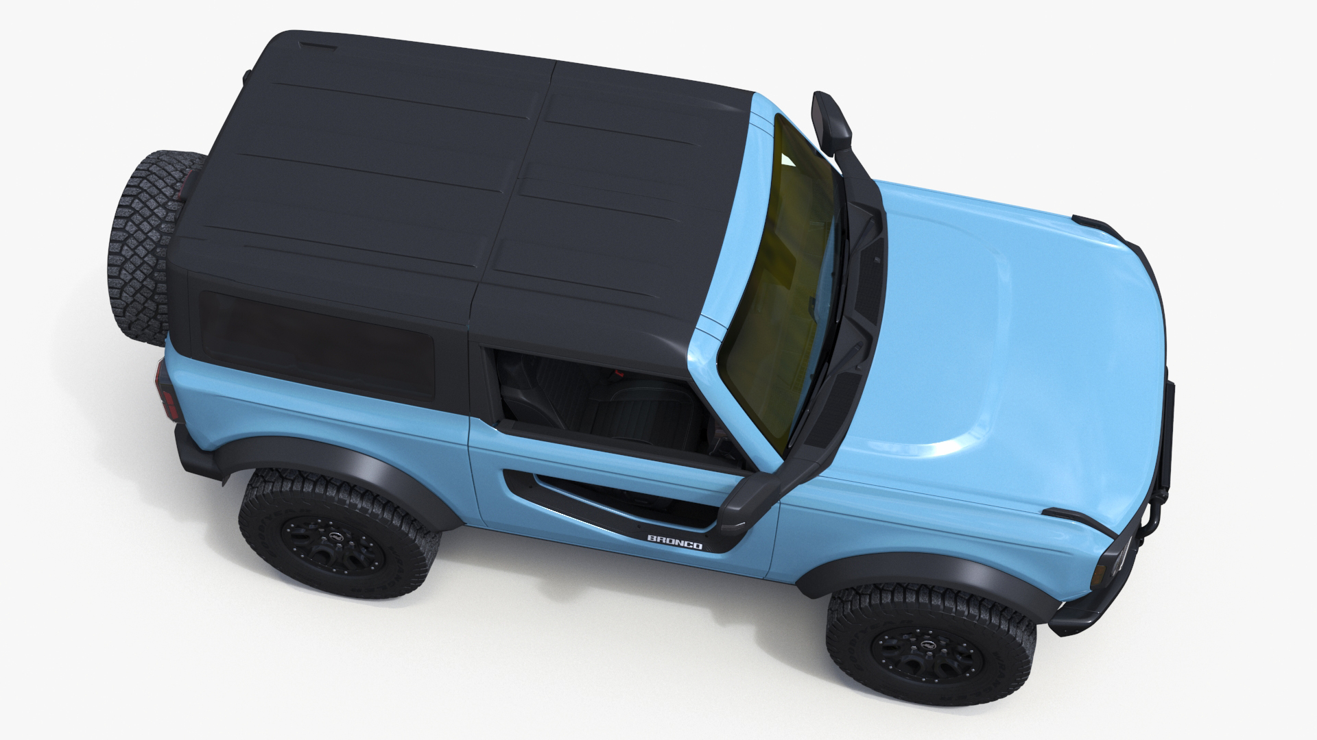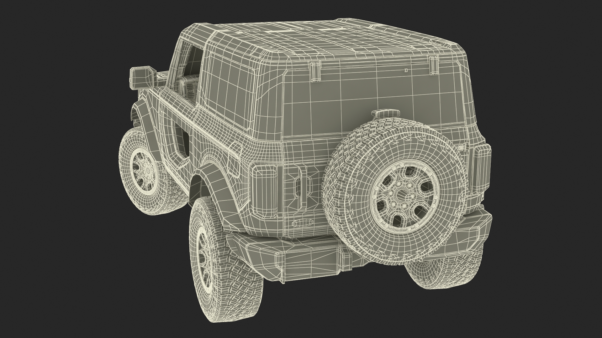 Ford Bronco Two Door Area 51 Rigged is a 3d model of a specific variant of the Ford Bronco SUV that features a two-door configuration and is painted in the "Area 51" color.