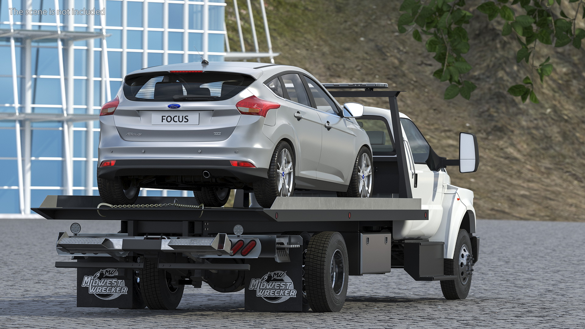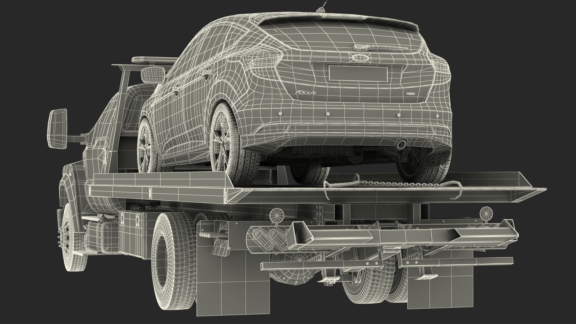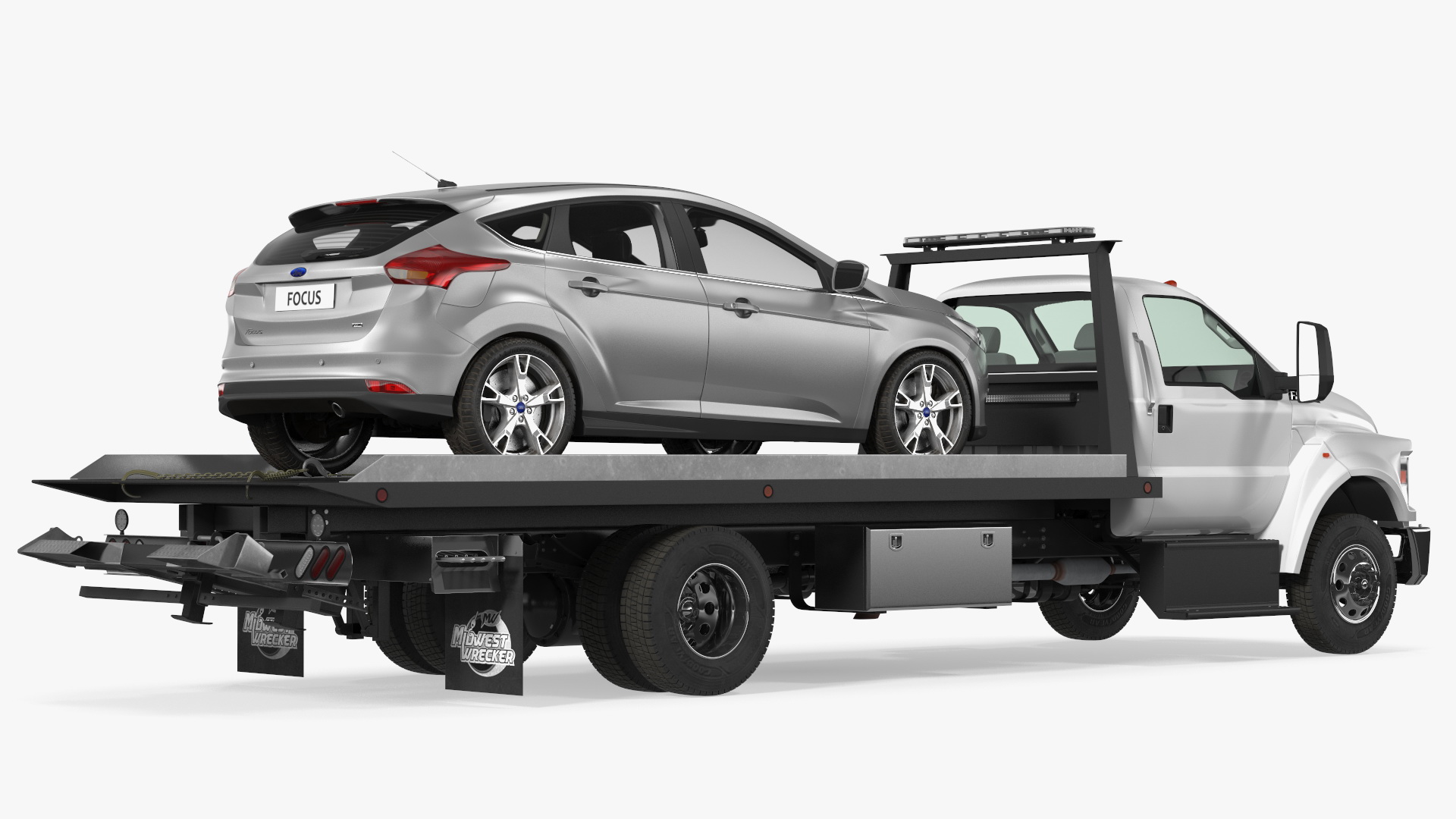 Ford F650 Tow Truck with Ford Focus is a three-dimensional model of a truck used for a cars transportation (relocation).