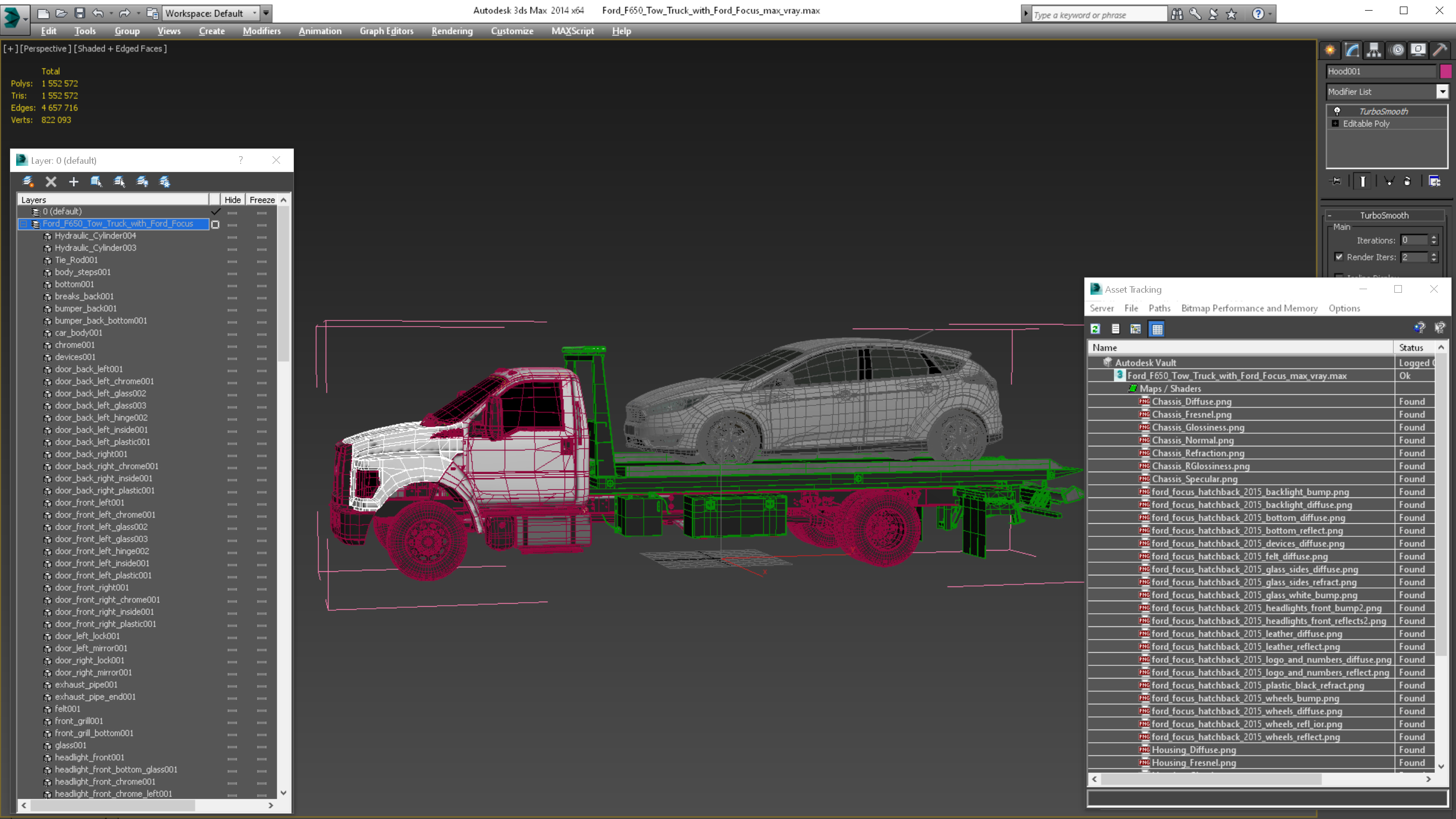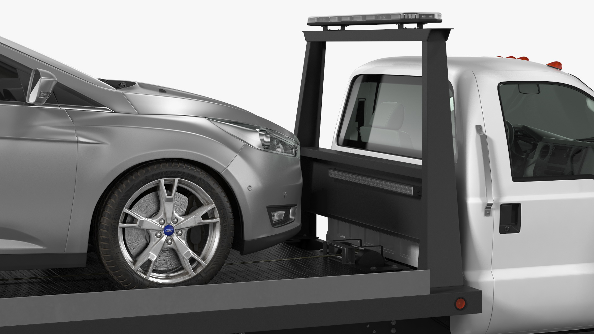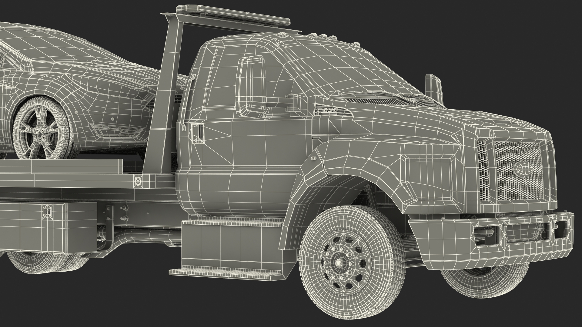 Ford F650 Tow Truck with Ford Focus is a three-dimensional model of a truck used for a cars transportation (relocation).