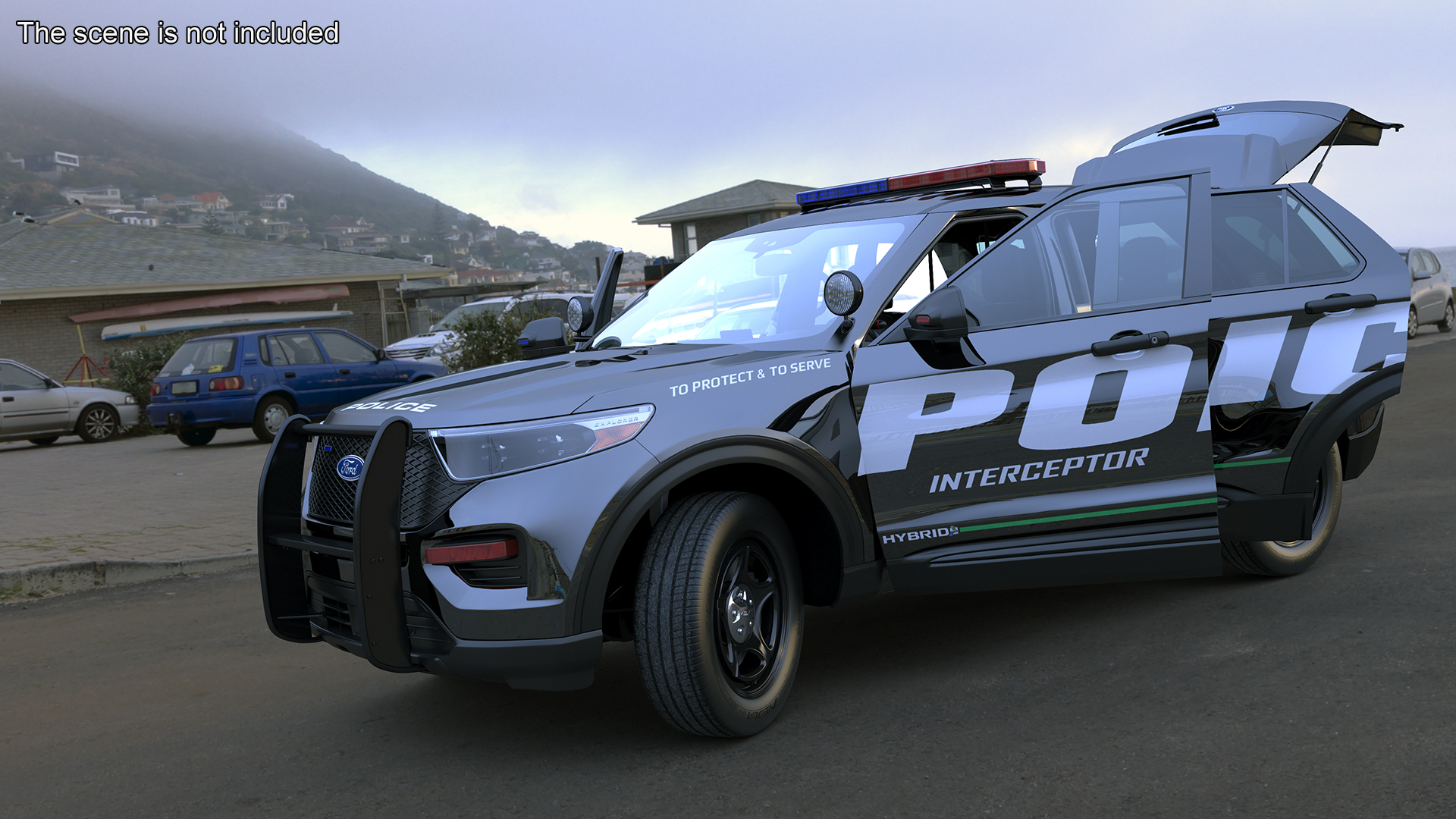Ford Police Interceptor Utility Hybrid AWD is a 3d model of a state-of-the-art hybrid police SUV, engineered for modern law enforcement needs with advanced performance and utility features.