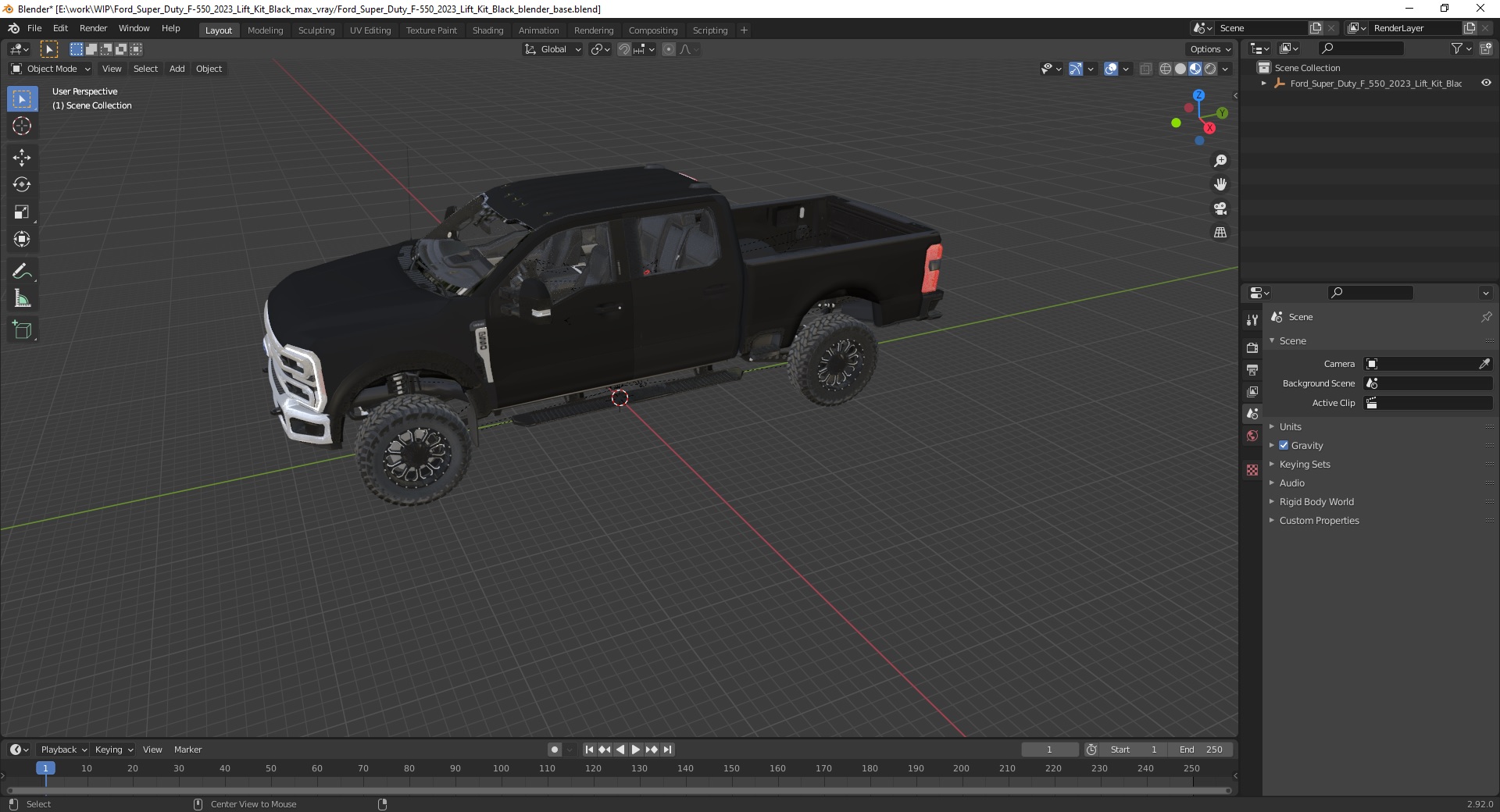Ford Super Duty F-550 2023 Lift Kit Black is a high quality, photo real 3d model that will enhance detail and realism to any of your rendering projects. The model has a fully textured, detailed design that allows for close-up renders, and was originally modeled in 3ds Max 2020 and rendered with V-Ray. Renders have no postprocessing!