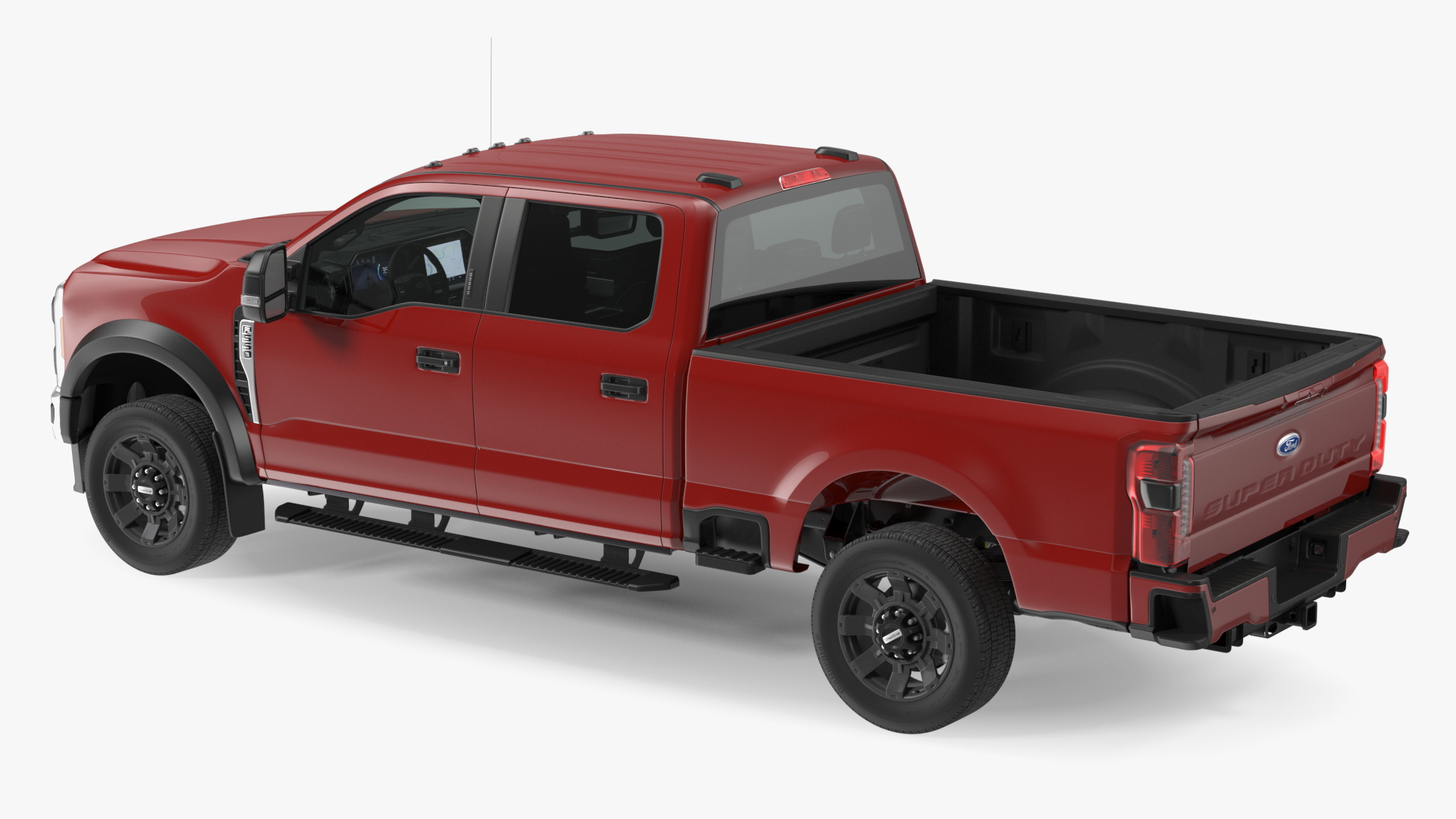 Ford Super Duty F550 Pickup Red Rigged is fully rigged and is ready to be animated. You can easily position it the way you need or animate it the way your project requires using helpers in 3D Studio Max. See the turntable to get an idea of how rigging works.
