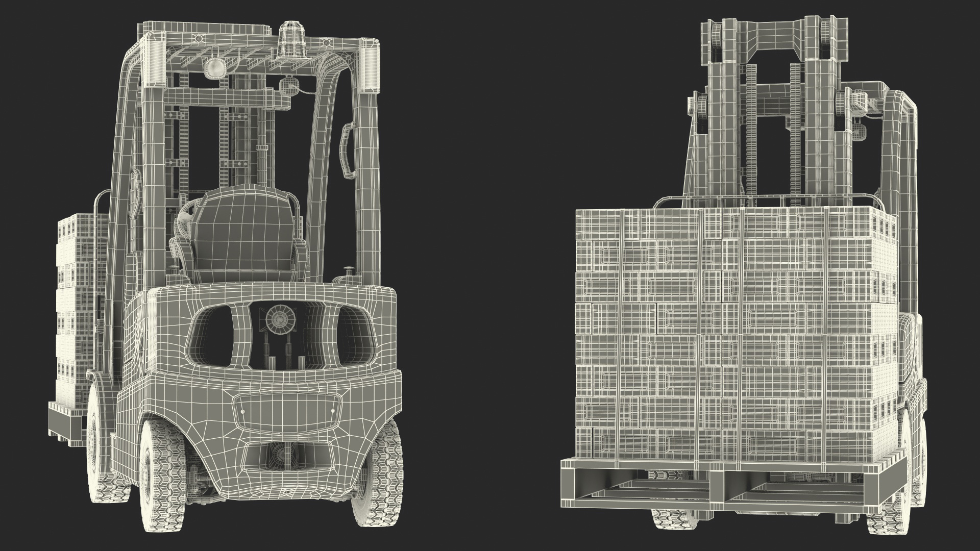 Forklift Toyota with Red Bricks Stacked on Wooden Pallet Rigged is fully rigged and is ready to be animated. You can easily position it the way you need or animate it the way your project requires using helpers in 3D Studio Max. See the turntable to get an idea of how rigging works.