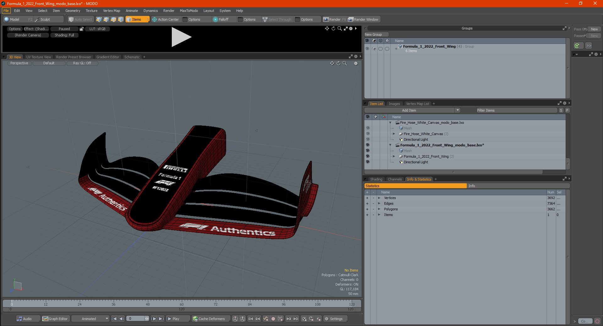Formula 1 2022 Front Wing is a high quality, photo real 3d model that will enhance detail and realism to any of your rendering projects. The model has a fully textured, detailed design that allows for close-up renders, and was originally modeled in 3ds Max 2020 and rendered with V-Ray. Renders have no postprocessing!