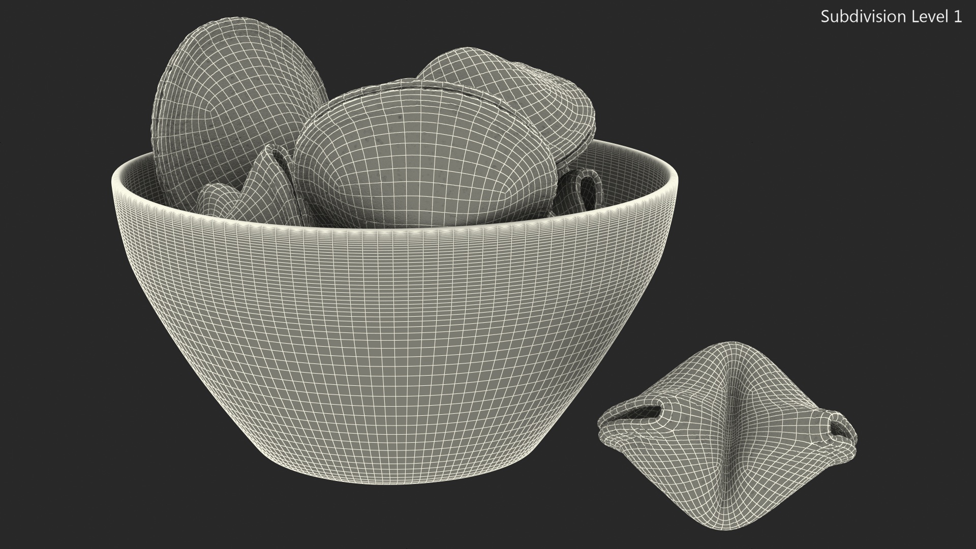 Fortune Cookies in Bowl is a high quality, photo real 3d model that will enhance detail and realism to any of your rendering projects. The model has a fully textured, detailed design that allows for close-up renders, and was originally modeled in 3ds Max 2020 and rendered with V-Ray. Renders have no postprocessing!