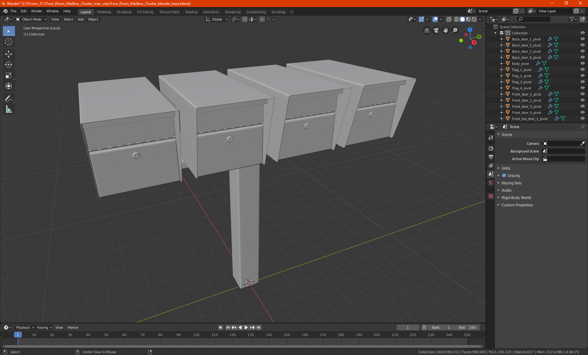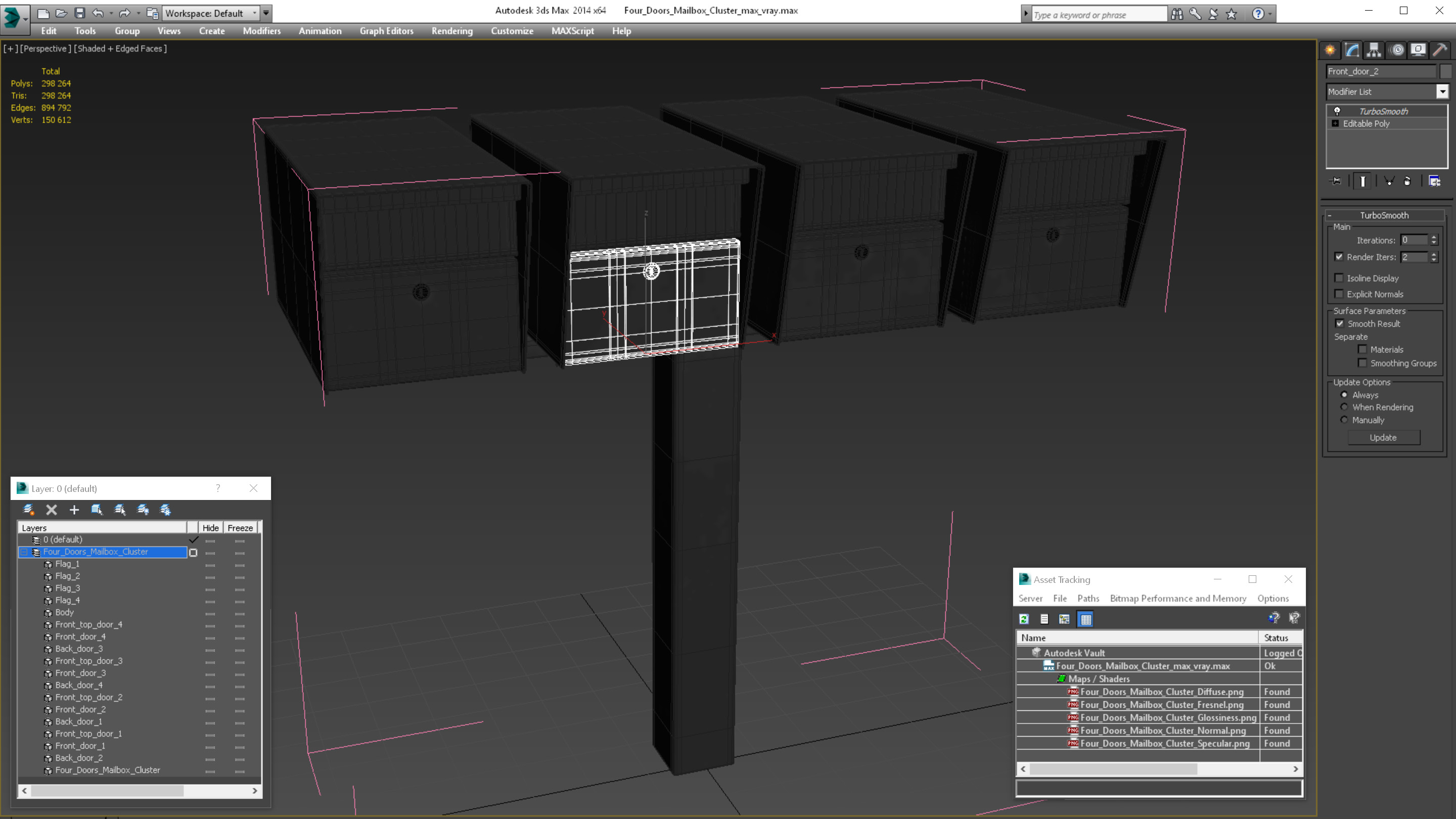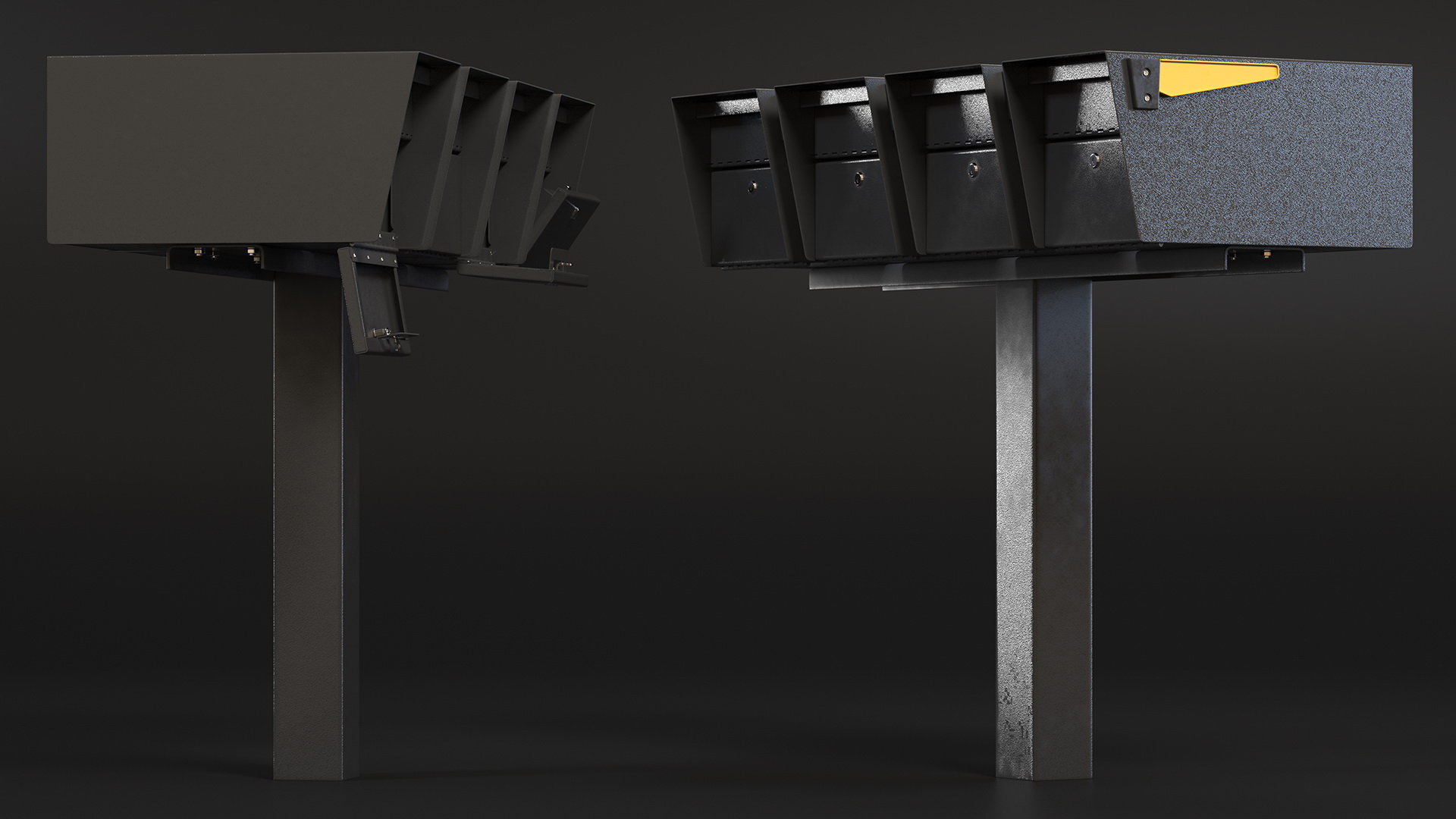 Four Doors Mailbox Cluster is a high quality, photo real 3d model that will enhance detail and realism to any of your rendering projects. The model has a fully textured, detailed design that allows for close-up renders, and was originally modeled in 3ds Max 2020 and rendered with V-Ray. Renders have no postprocessing!