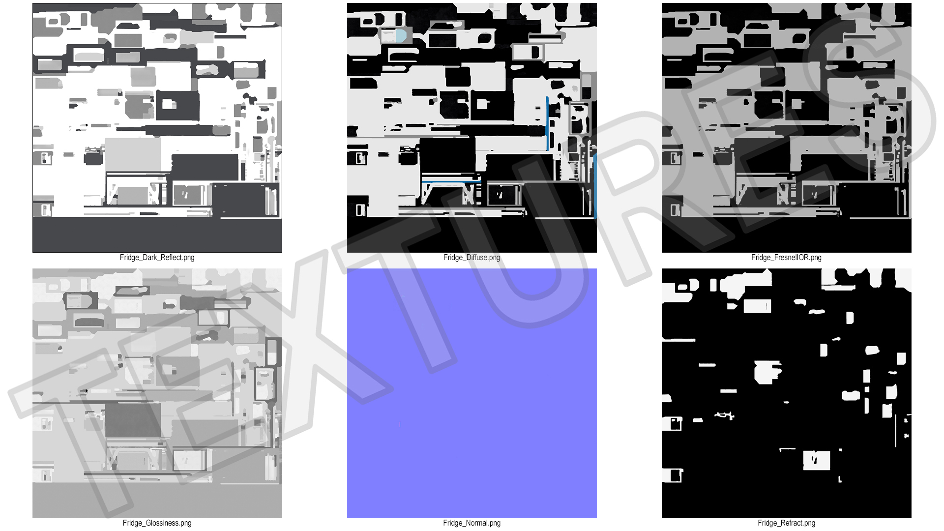 All textures and materials are included and mapped. (All colors can be easily modified.)