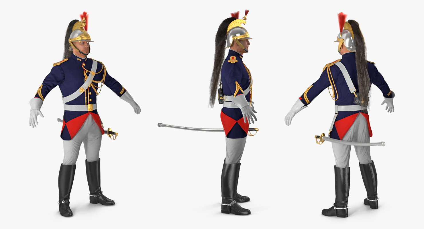 French Republican Guard in Traditional Uniform Rigged is a high quality, photo real 3d model that will enhance detail and realism to any of your rendering projects. The model has a fully textured, detailed design that allows for close-up renders, and was originally modeled in 3ds Max 2020 and rendered with V-Ray. Renders have no postprocessing!