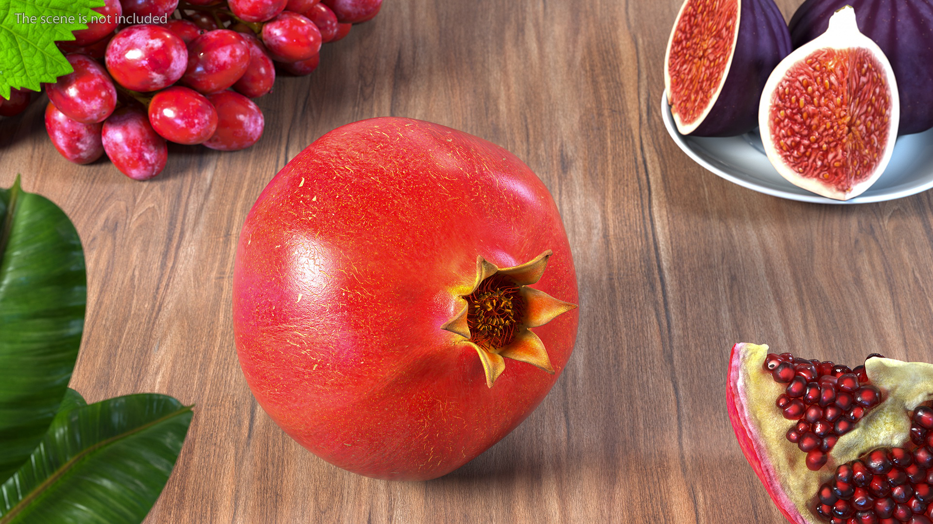 Fresh Pomegranate Fruit is a 3d model of round, red fruit with a tough outer skin that is typically separated into segments filled with juicy, red seeds.