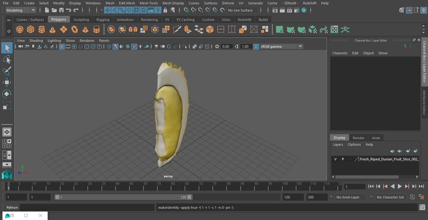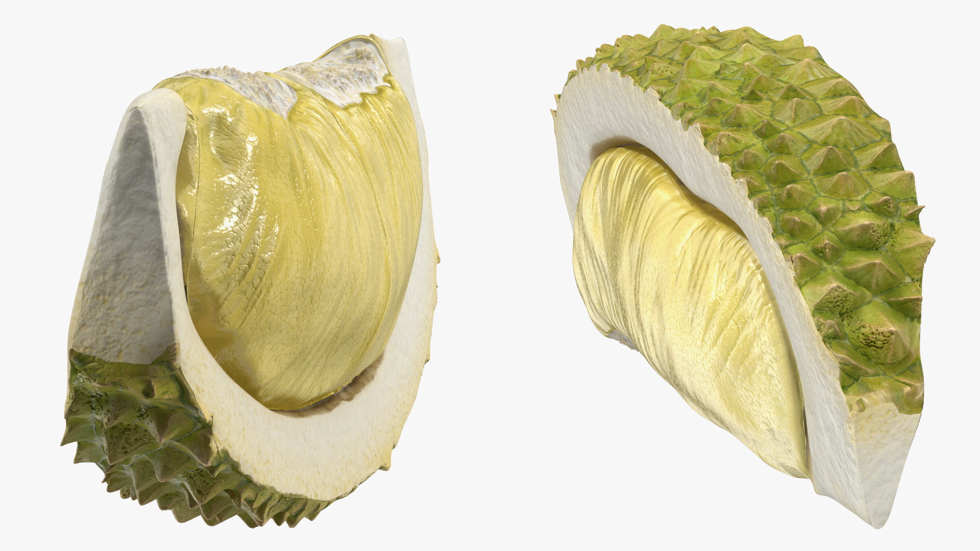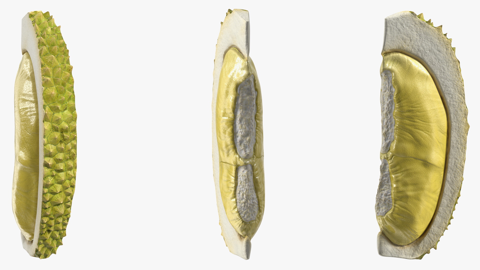 Fresh Riped Durian Fruit Slice is a 3d model of spiky tropical fruit that is native to Southeast Asia.