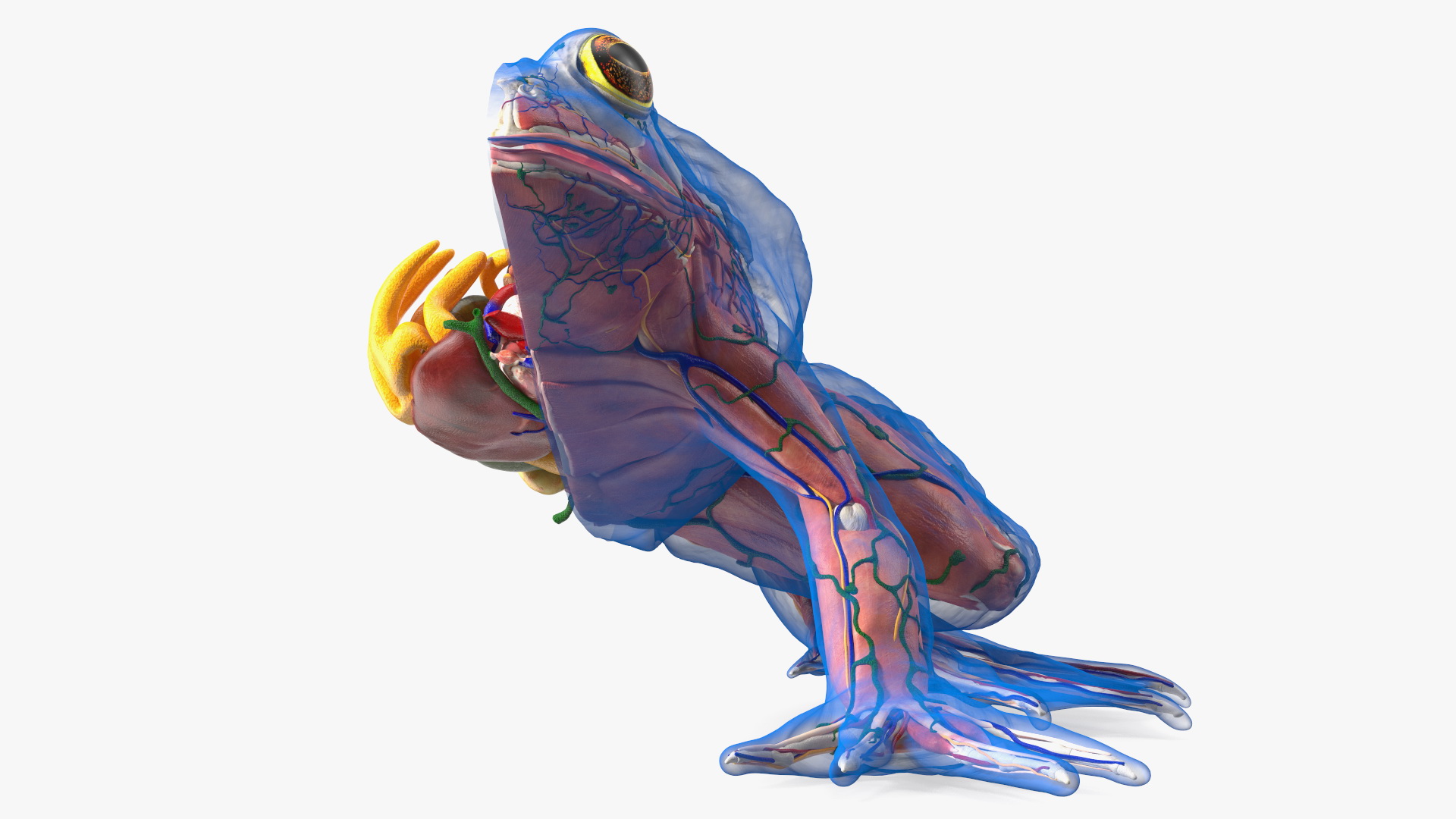 Frog Anatomy Left Side Transparent is a high quality, photo real 3d model that will enhance detail and realism to any of your rendering projects. The model has a fully textured, detailed design that allows for close-up renders, and was originally modeled in 3ds Max 2020 and rendered with V-Ray. Renders have no postprocessing!