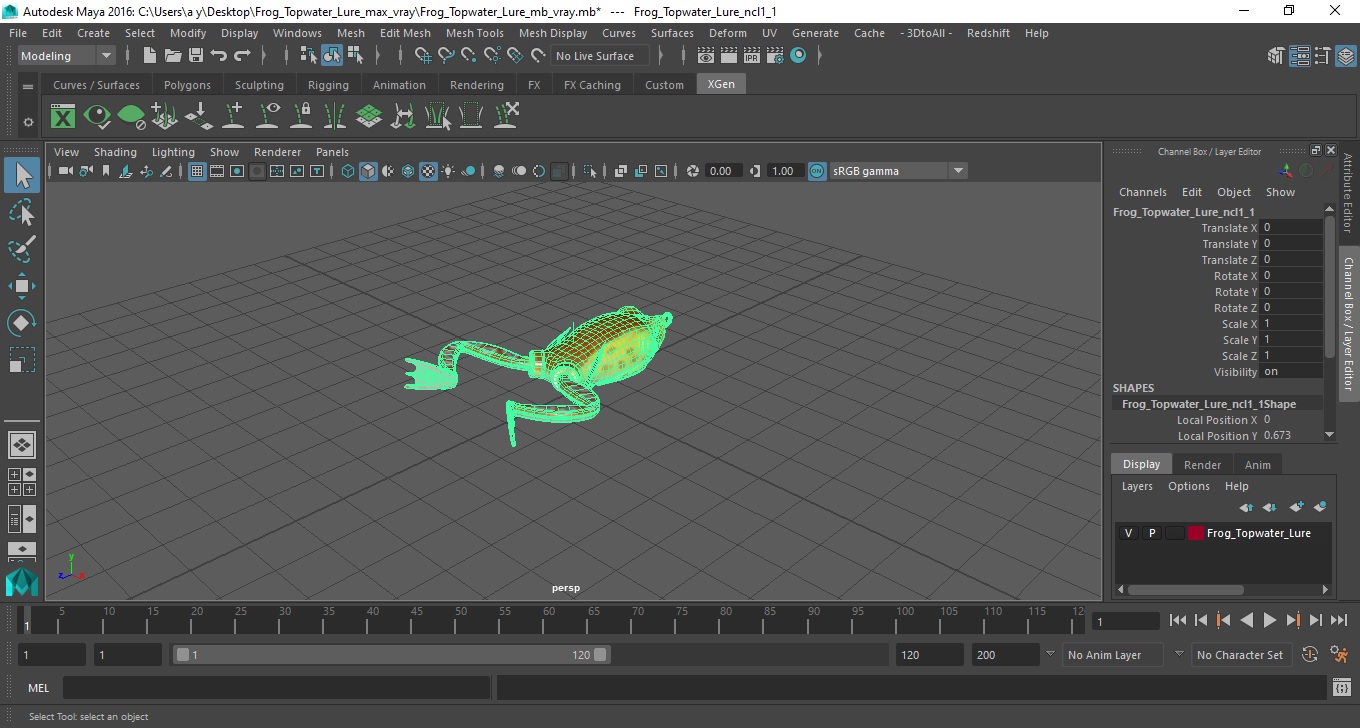 Frog Topwater Lure is a high quality, photo real 3d model that will enhance detail and realism to any of your rendering projects. The model has a fully textured, detailed design that allows for close-up renders, and was originally modeled in 3ds Max 2020 and rendered with V-Ray. Renders have no postprocessing!