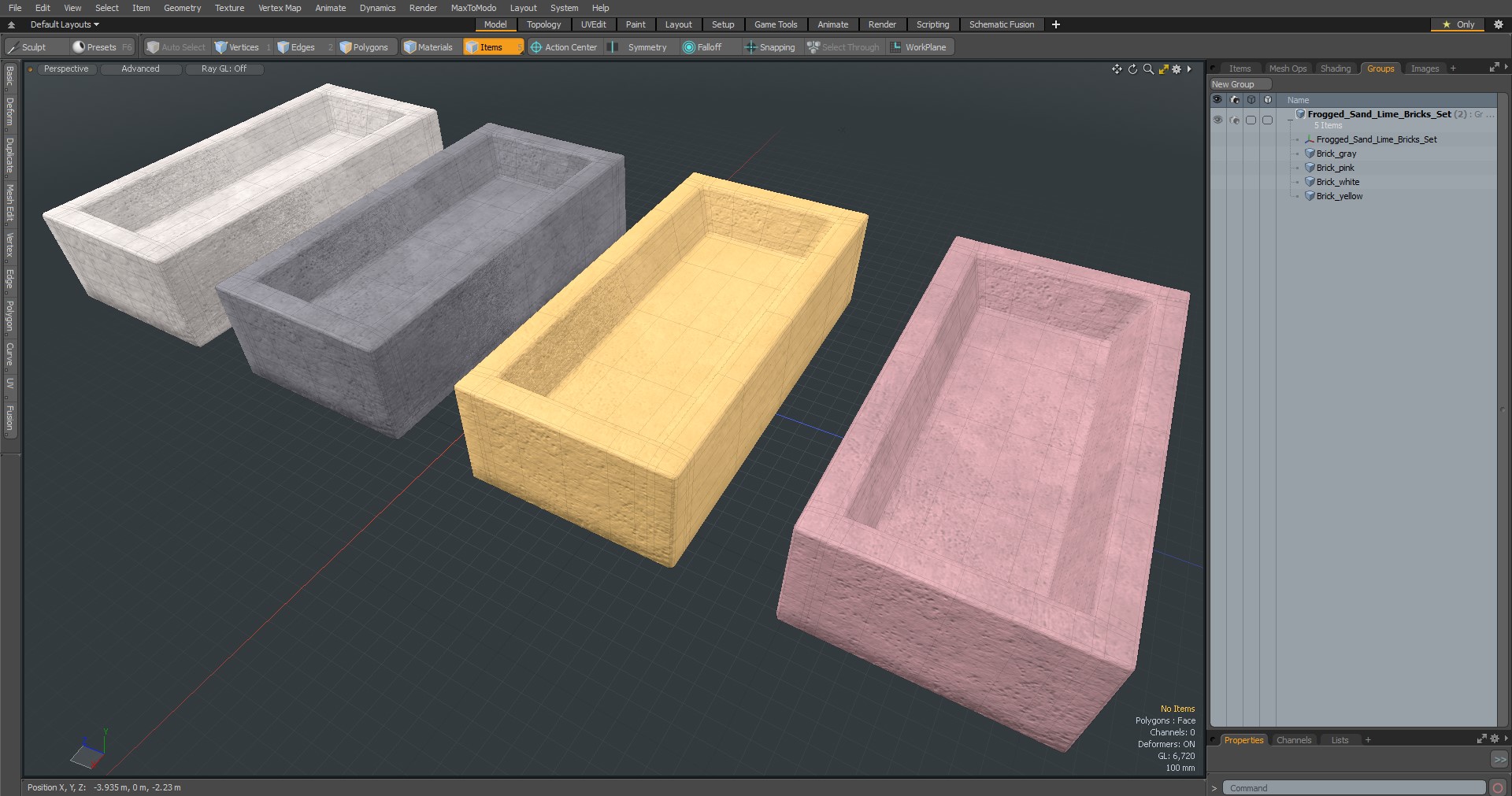 Frogged Sand Lime Bricks Set is a high quality, photo real 3d model that will enhance detail and realism to any of your rendering projects. The model has a fully textured, detailed design that allows for close-up renders, and was originally modeled in 3ds Max 2020 and rendered with V-Ray. Renders have no postprocessing!