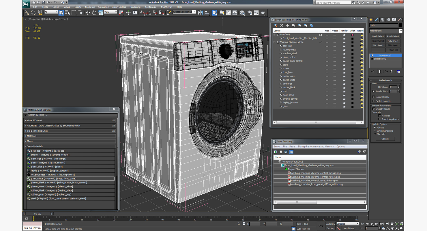 Front Load Washing Machine White is a high quality, photo real 3d model that will enhance detail and realism to any of your rendering projects. The model has a fully textured, detailed design that allows for close-up renders, and was originally modeled in 3ds Max 2020 and rendered with V-Ray. Renders have no postprocessing!