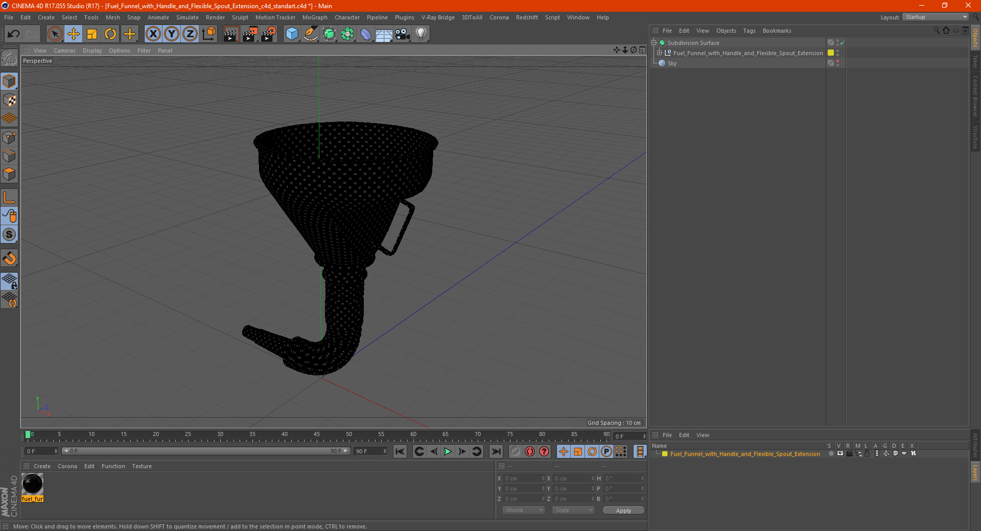 Fuel Funnel with Handle and Flexible Spout Extension is a high quality, photo real 3d model that will enhance detail and realism to any of your rendering projects. The model has a fully textured, detailed design that allows for close-up renders, and was originally modeled in 3ds Max 2020 and rendered with V-Ray. Renders have no postprocessing!