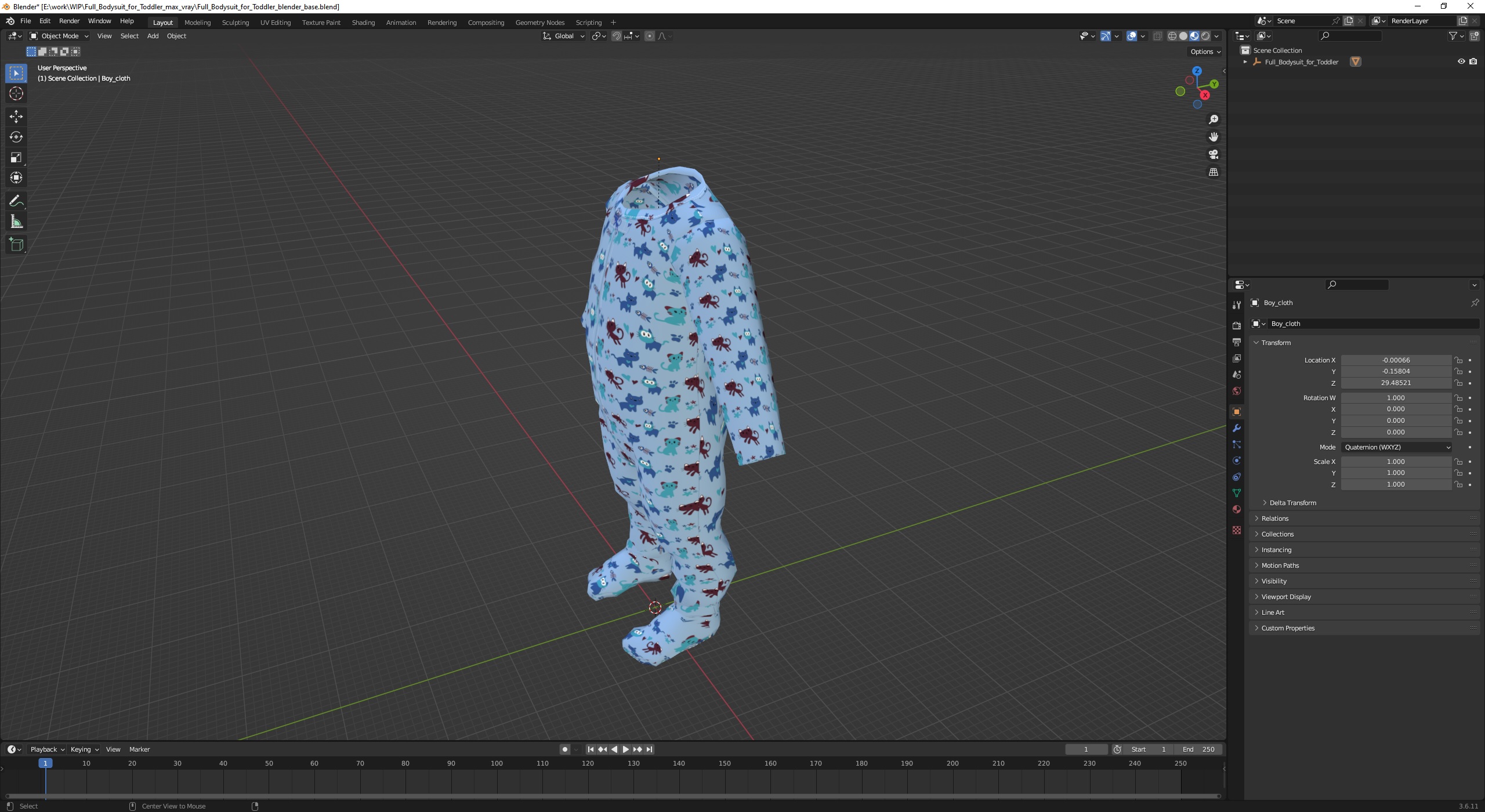Full Bodysuit for Toddler is a high quality, photo real 3d model that will enhance detail and realism to any of your rendering projects. The model has a fully textured, detailed design that allows for close-up renders, and was originally modeled in 3ds Max 2020 and rendered with V-Ray. Renders have no postprocessing!