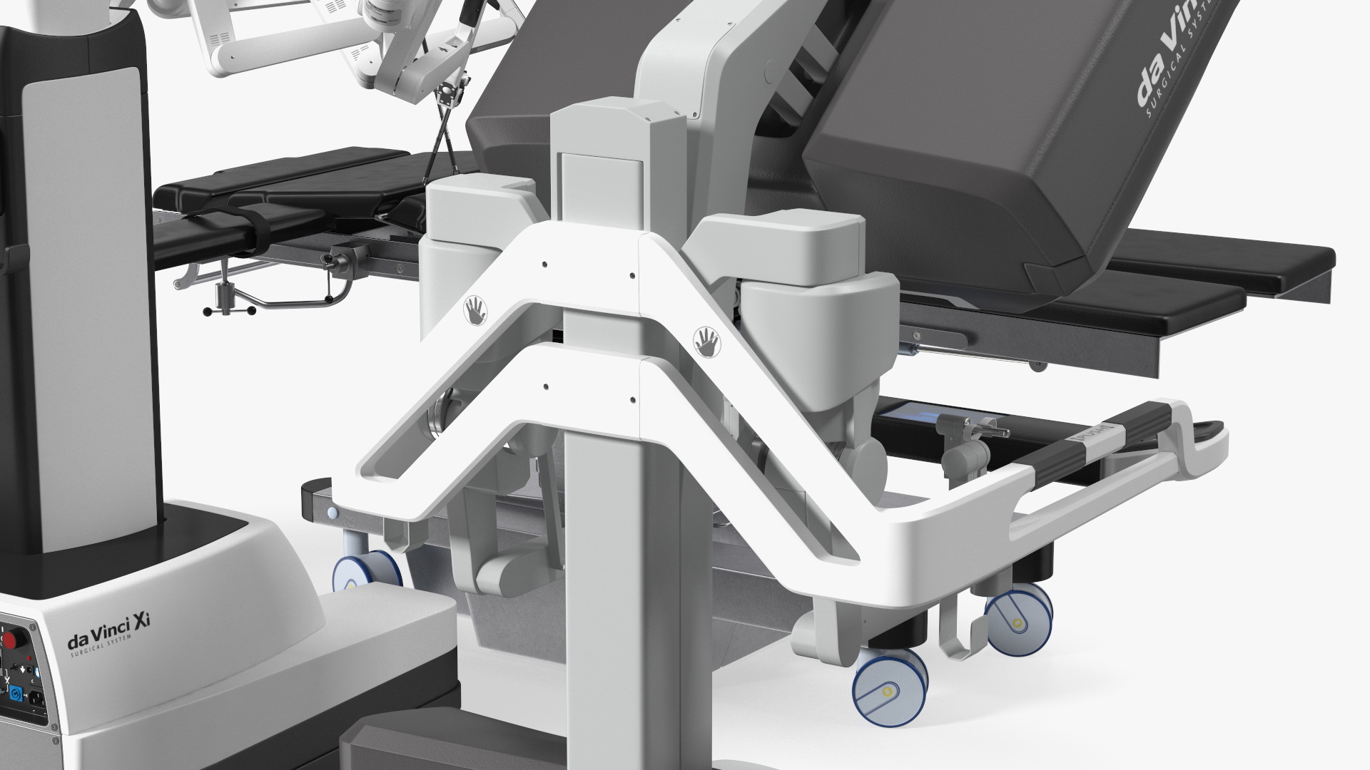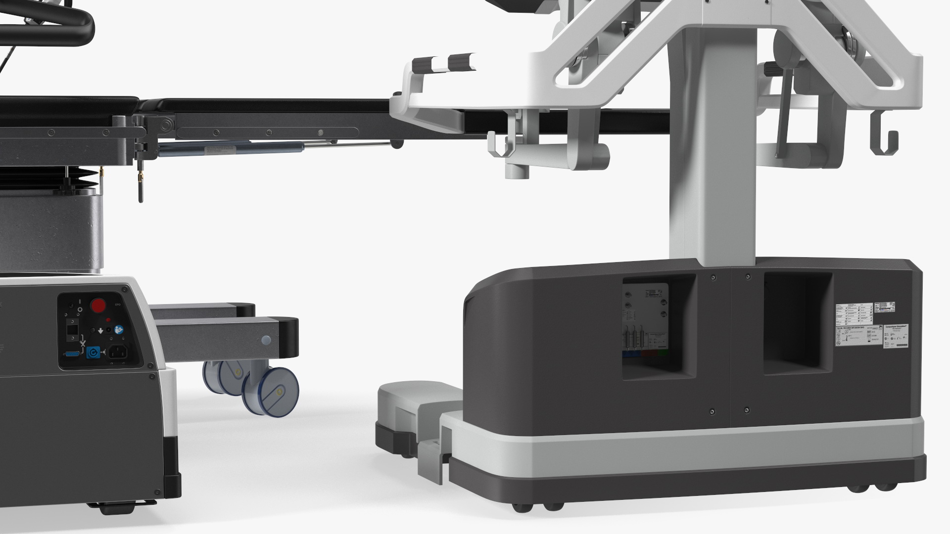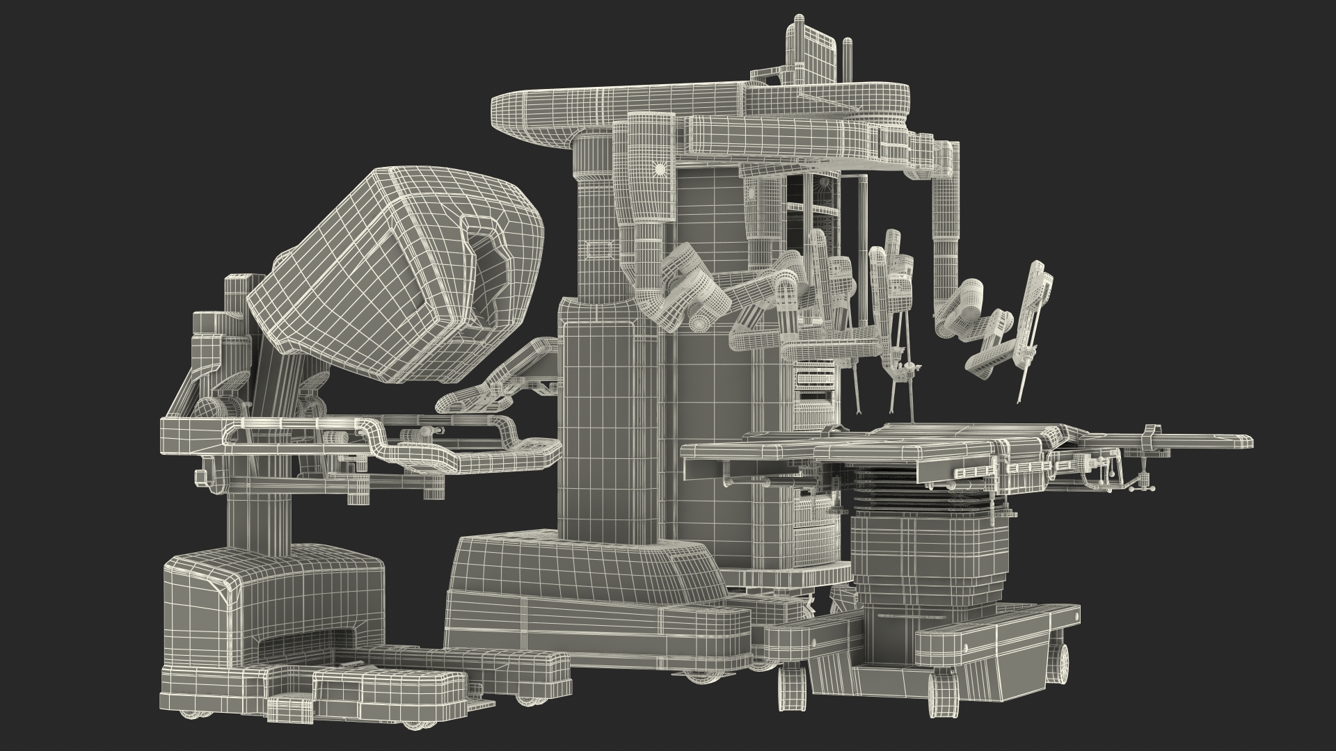 Full Da Vinci Surgical System Rigged with Operating Table is a three-dimensional model of a hi-tech robotic machinery or robot surgical system with special hospital operating table equipment.