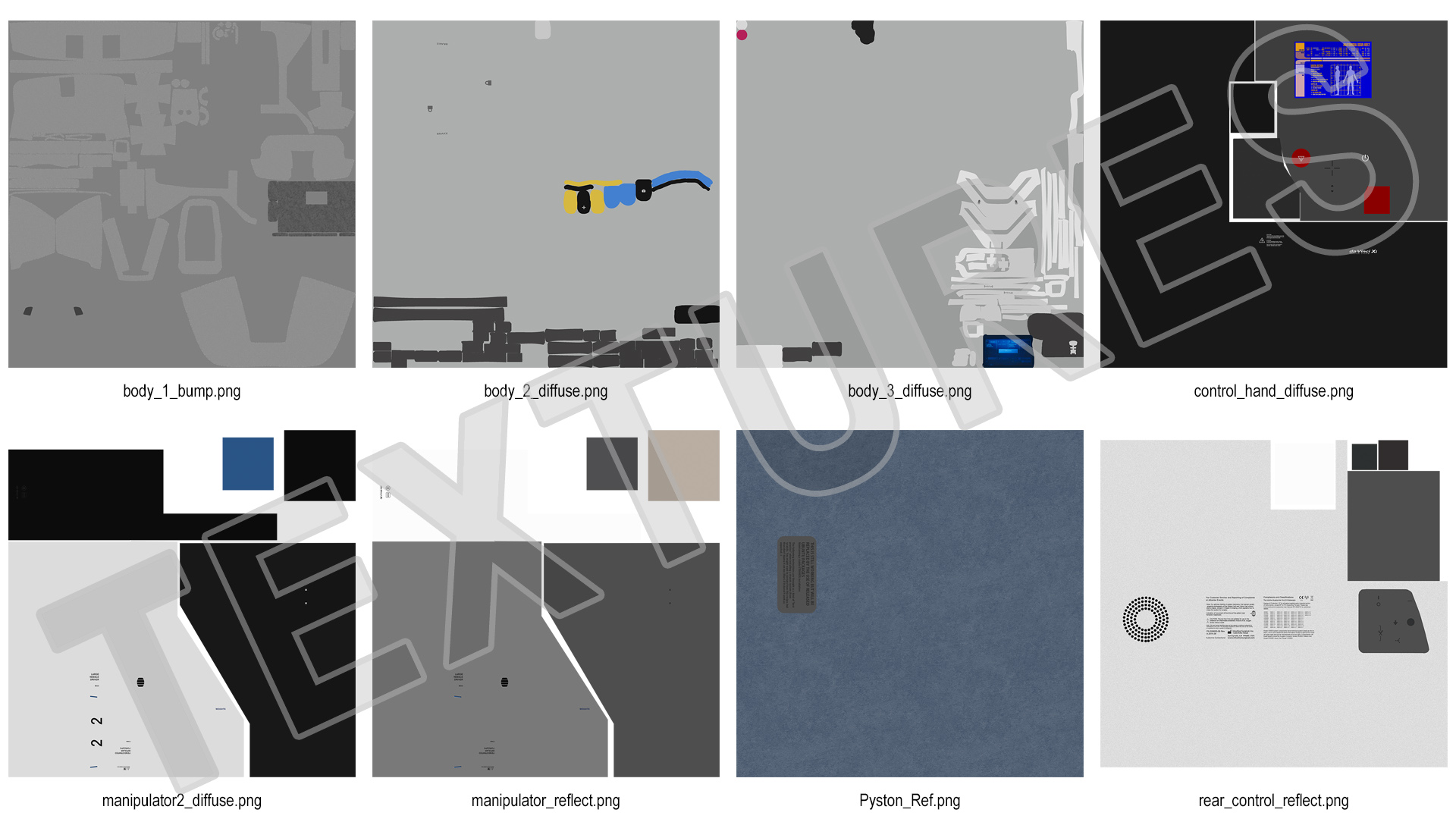 All textures and materials are included and mapped. (All colors can be easily modified.)