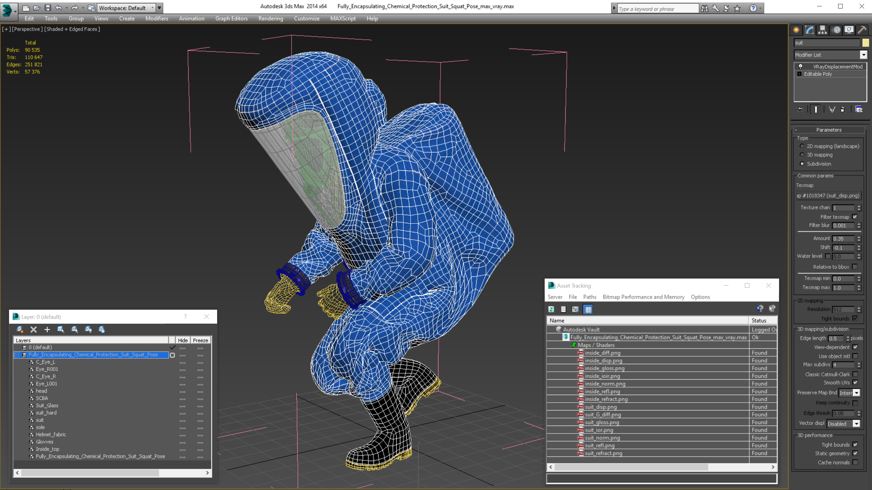 Fully Encapsulating Chemical Protection Suit Squat Pose is a high quality, photo real 3d model that will enhance detail and realism to any of your rendering projects. The model has a fully textured, detailed design that allows for close-up renders, and was originally modeled in 3ds Max 2020 and rendered with V-Ray. Renders have no postprocessing!