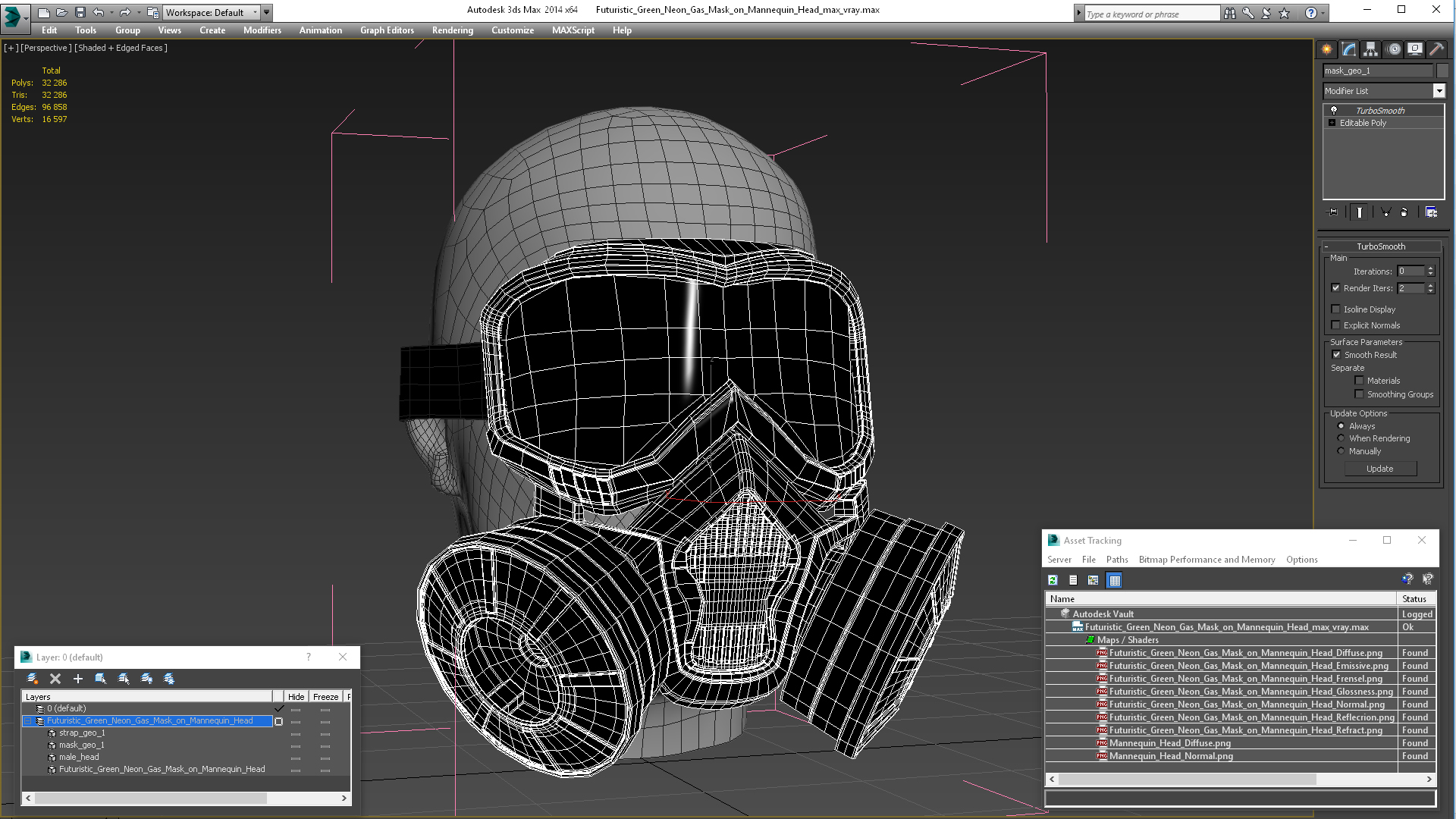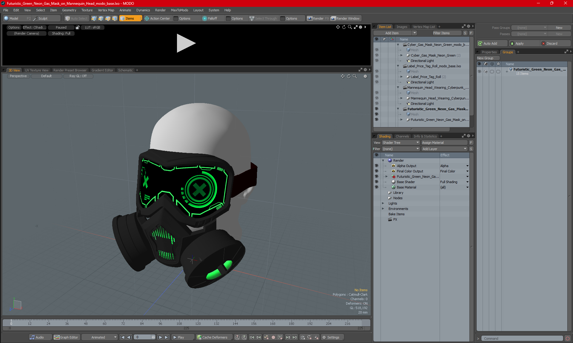 Futuristic Green Neon Gas Mask on Mannequin Head is a high quality, photo real 3d model that will enhance detail and realism to any of your rendering projects. The model has a fully textured, detailed design that allows for close-up renders, and was originally modeled in 3ds Max 2020 and rendered with V-Ray. Renders have no postprocessing!