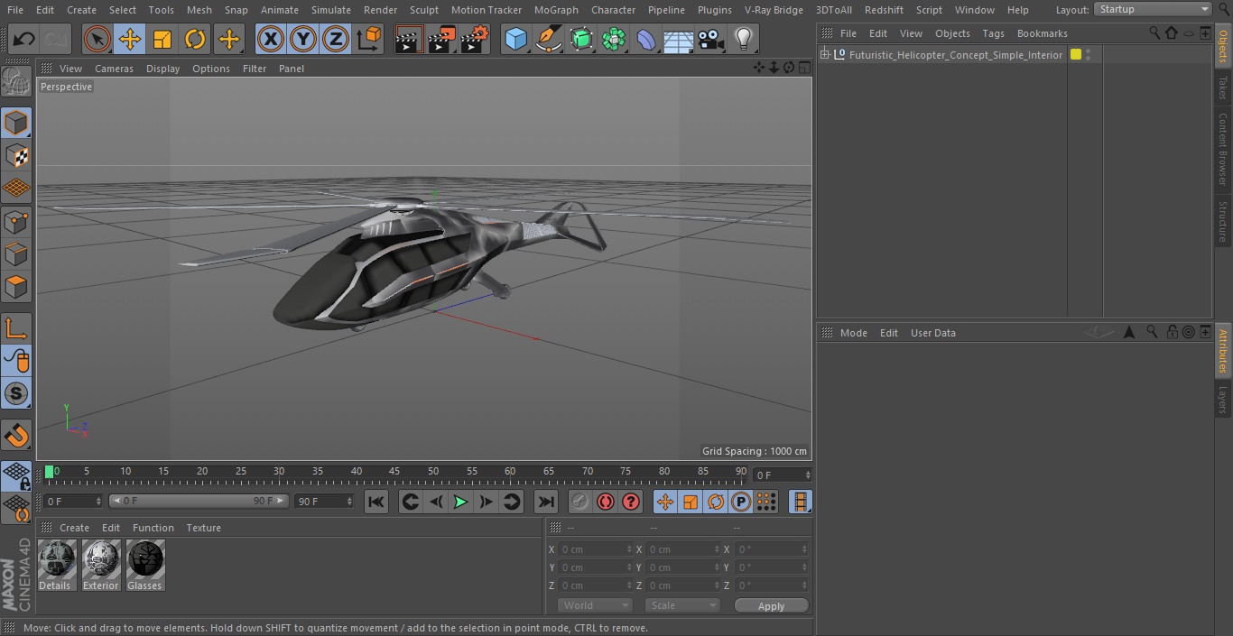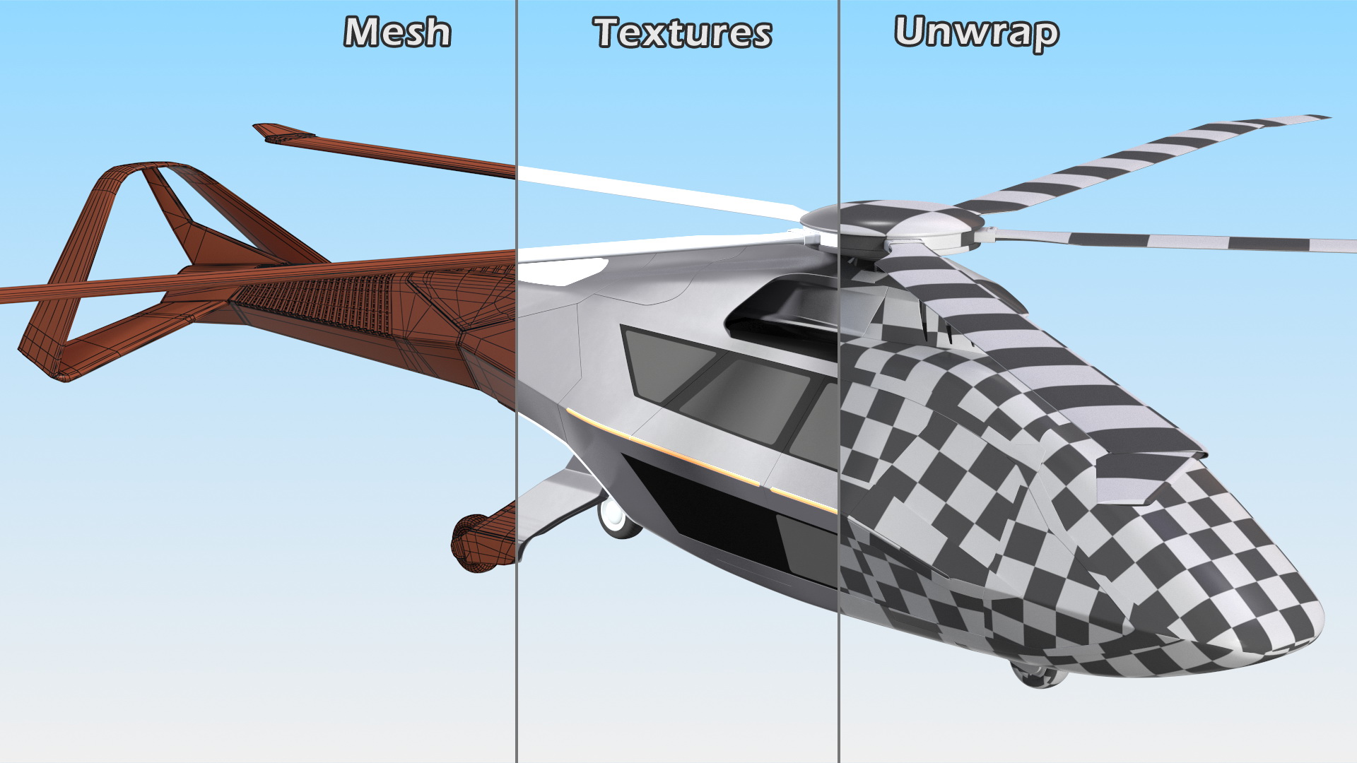 Futuristic Helicopter Concept Simple Interior is a three-dimensional model of a forward-looking, innovative rotor air transport.