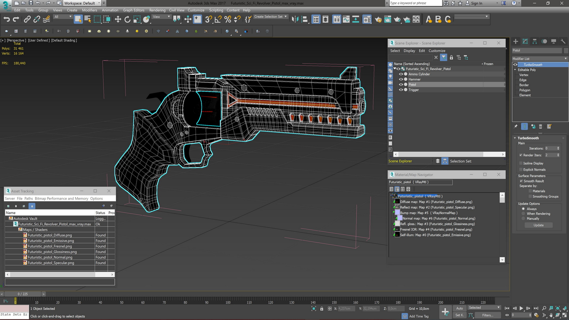Futuristic Sci Fi Revolver Pistol is a high quality, photo real 3d model that will enhance detail and realism to any of your rendering projects. The model has a fully textured, detailed design that allows for close-up renders, and was originally modeled in 3ds Max 2020 and rendered with V-Ray. Renders have no postprocessing!