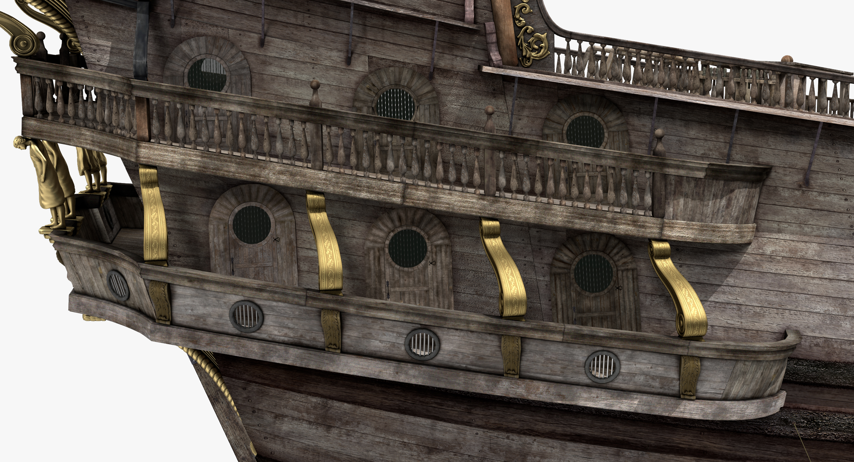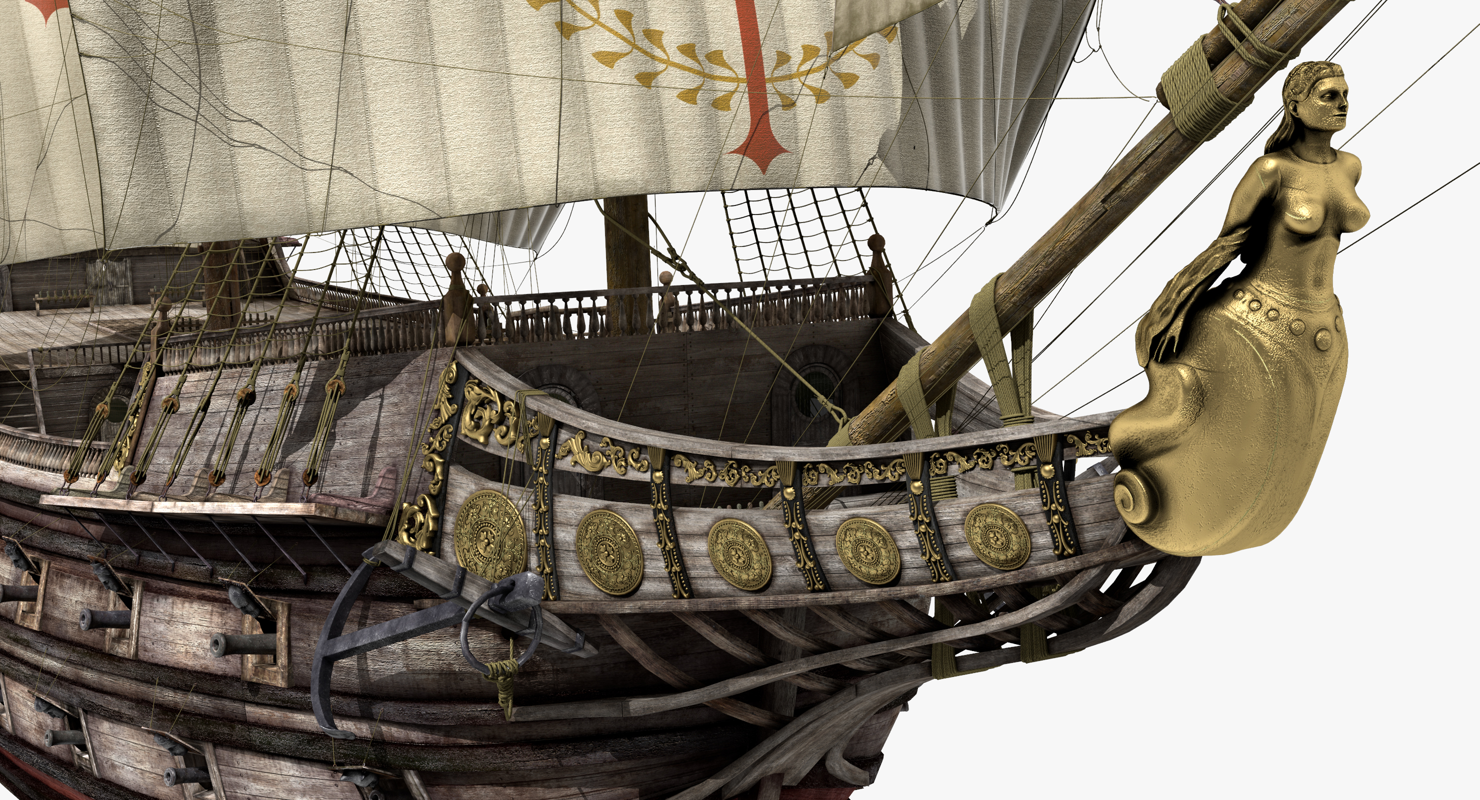 Galeon Old Historical Sail Ship is a high quality, photo real 3d model that will enhance detail and realism to any of your rendering projects. The model has a fully textured, detailed design that allows for close-up renders, and was originally modeled in 3ds Max 2020 and rendered with V-Ray. Renders have no postprocessing!