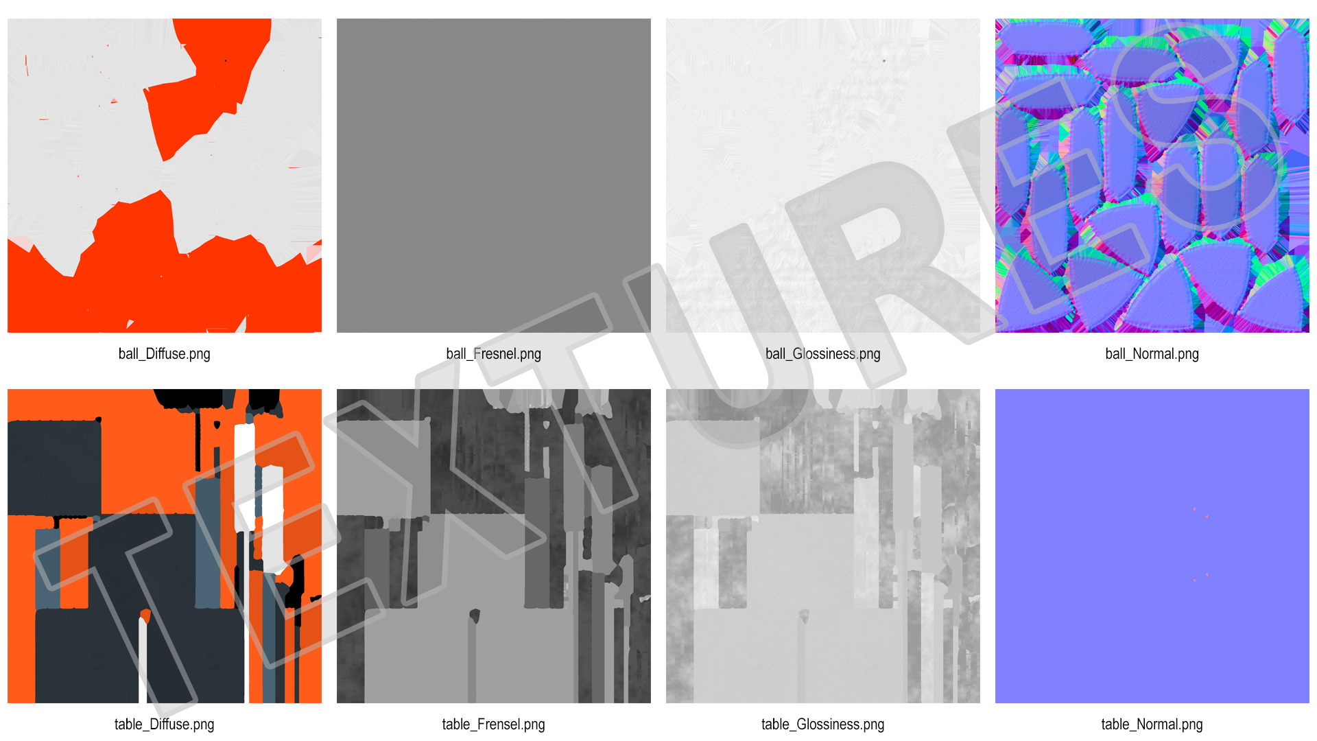 All textures and materials are included and mapped. (All colors can be easily modified.)