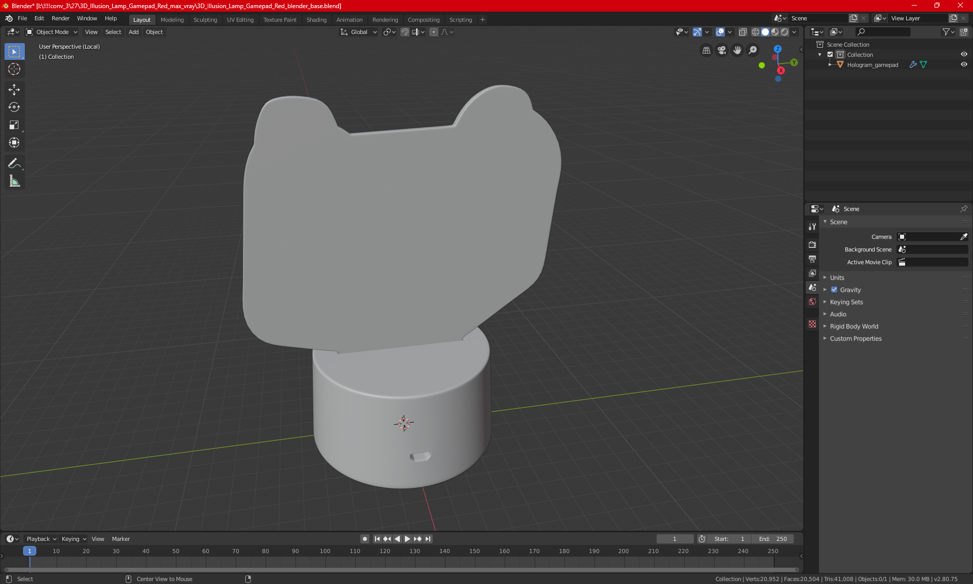 Gamepad Shape LED Hologram Night Light Blue is a high quality, photo real 3d model that will enhance detail and realism to any of your rendering projects. The model has a fully textured, detailed design that allows for close-up renders, and was originally modeled in 3ds Max 2020 and rendered with V-Ray. Renders have no postprocessing!